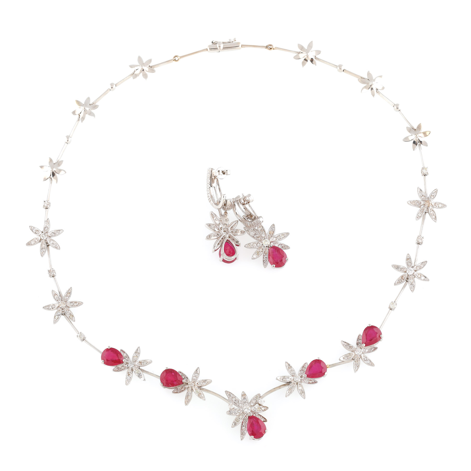 15. Pereche de cercei din aur alb, decorată cu rubine și diamante