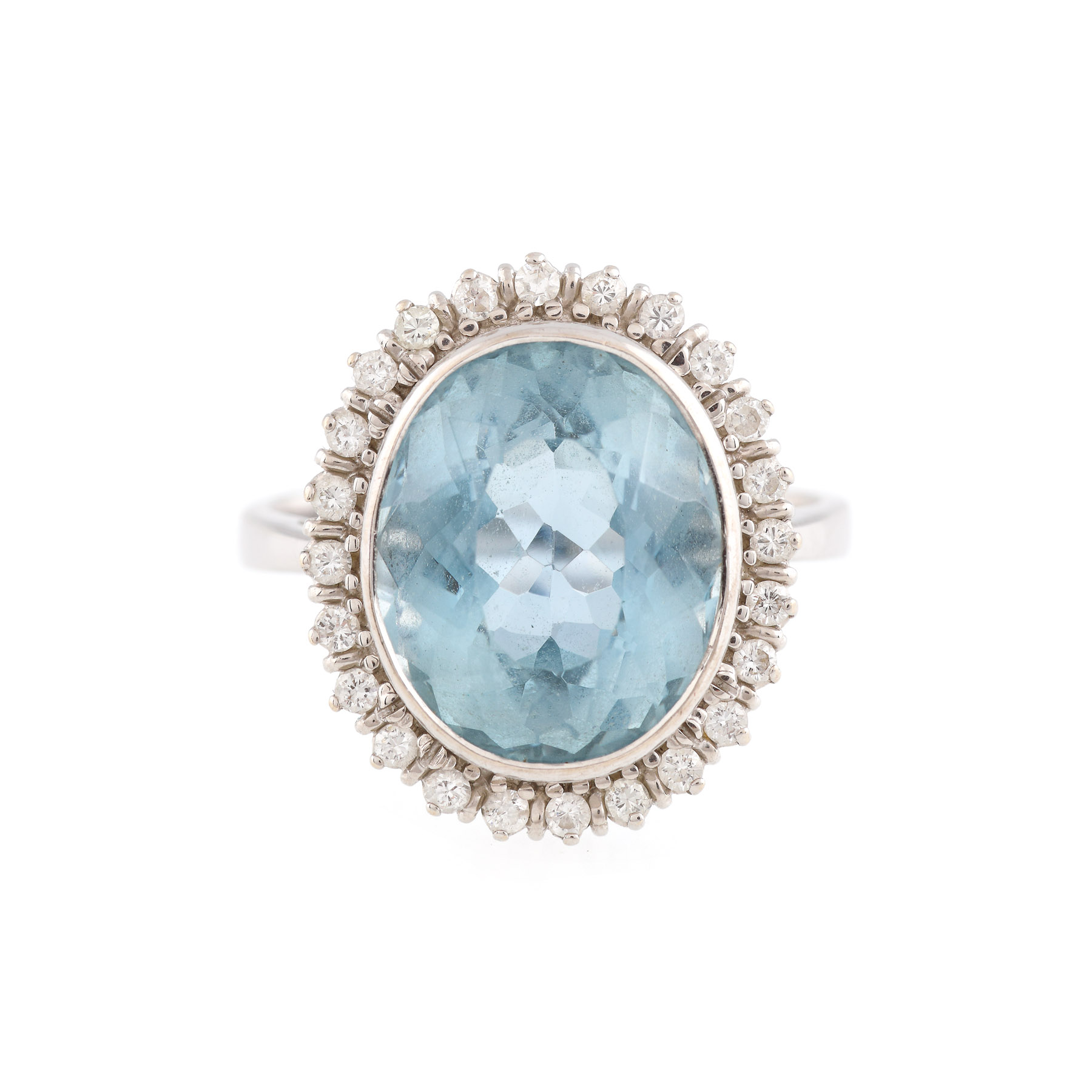 36. Inel din aur alb, ornat cu topaz în anturaj de diamante
