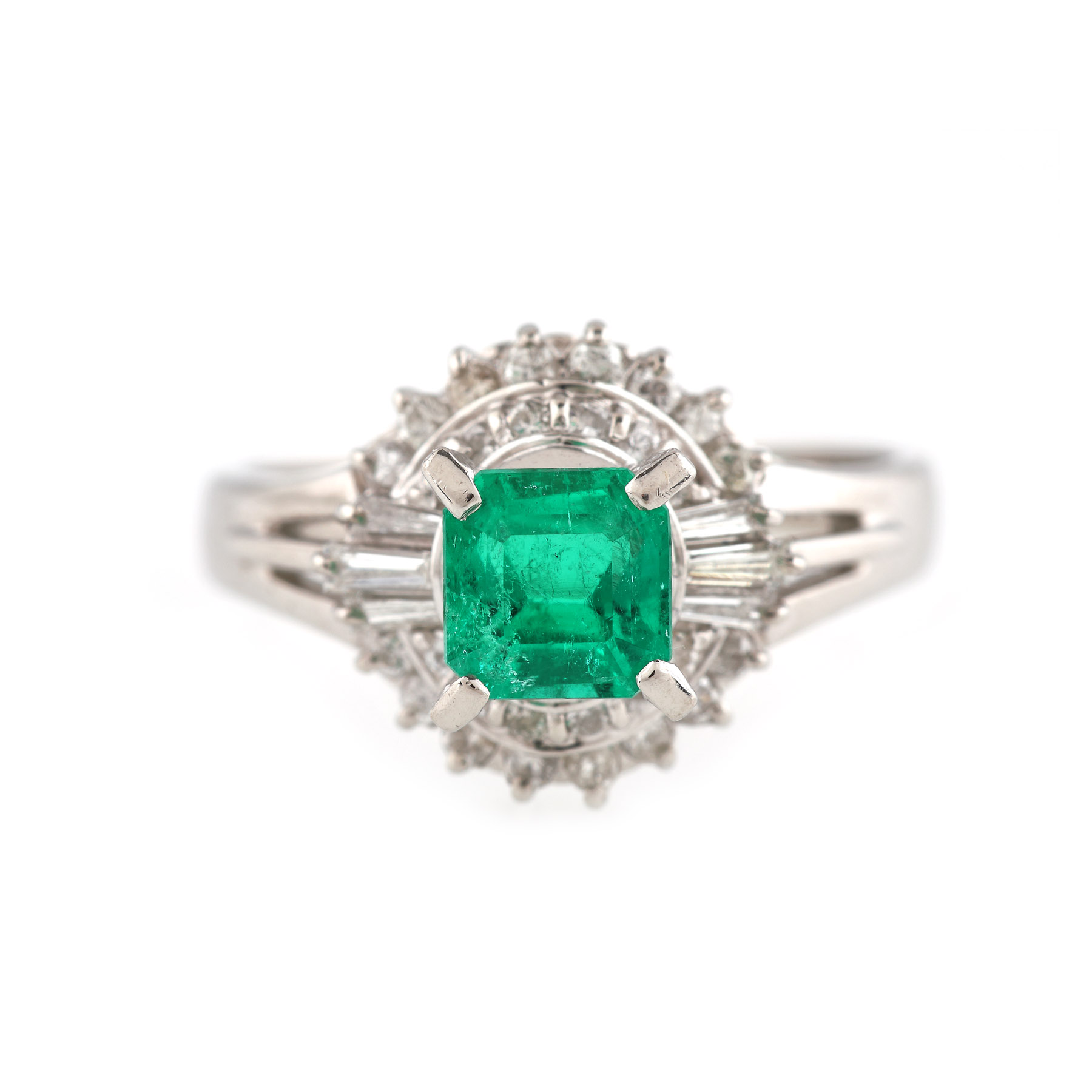 9. Inel din platină, decorat cu smarald și diamante
