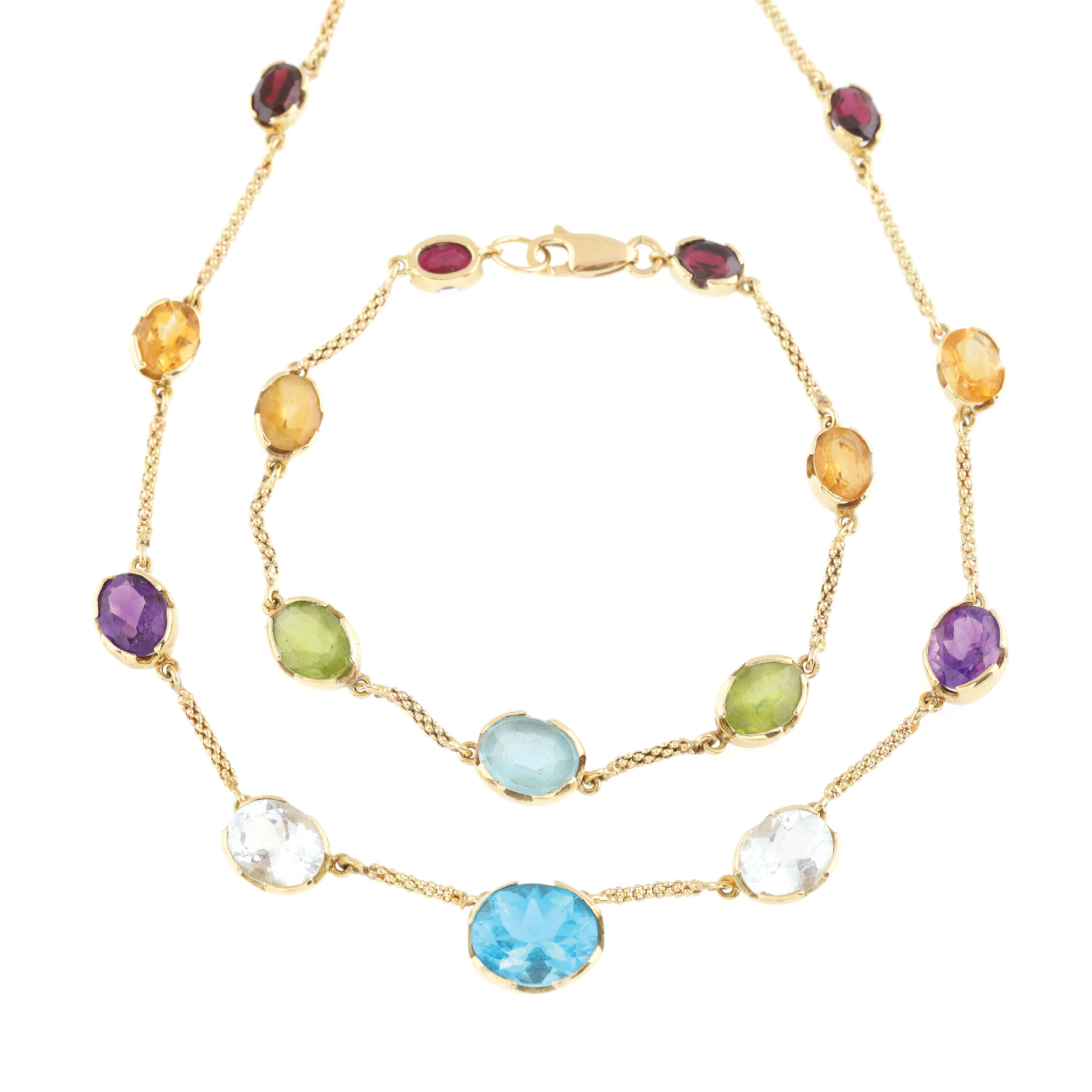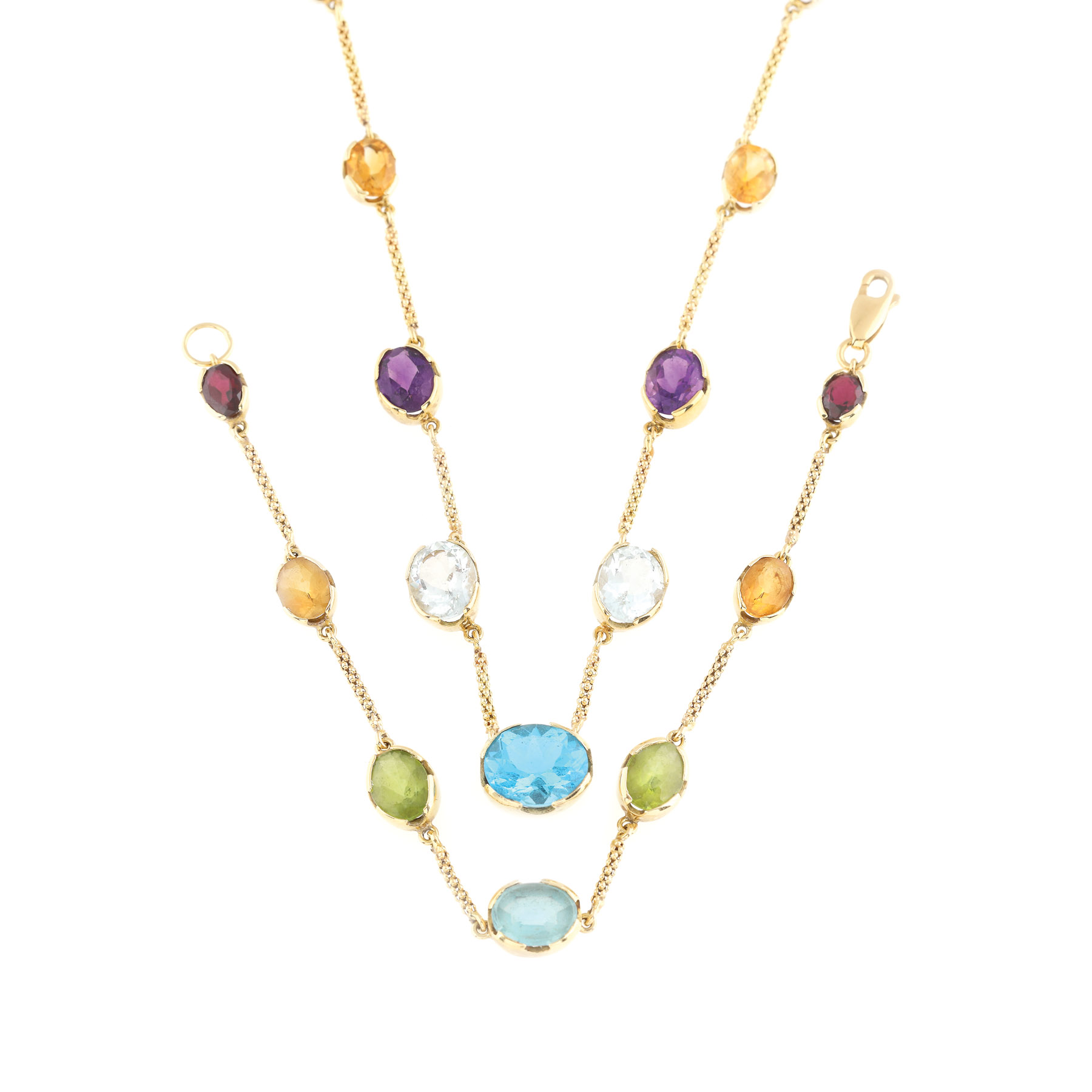 42. Demi-parure din aur, compus din colier și brățară, decorat cu pietre semiprețioase