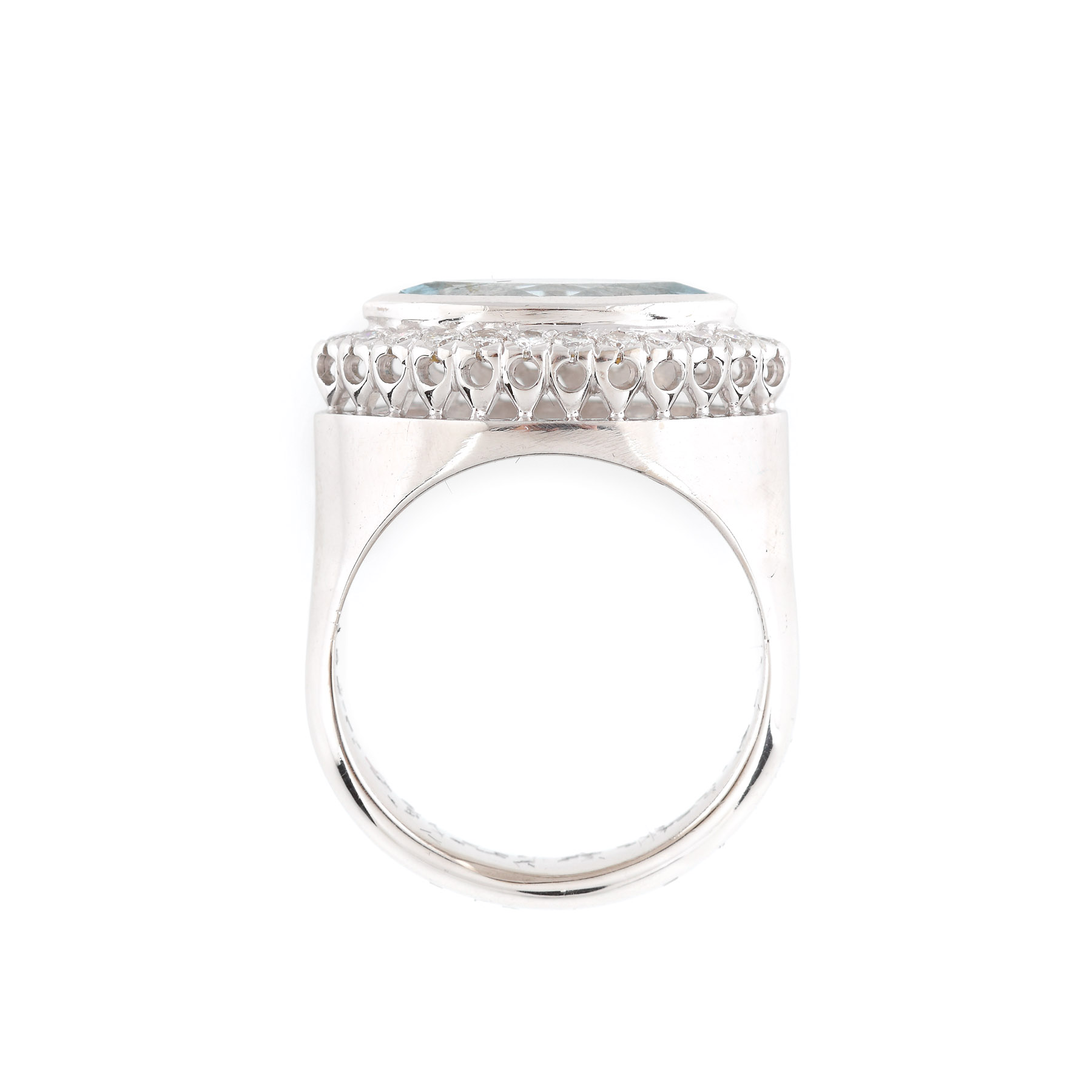 40. Inel din aur alb, decorat cu acvamarin marchiză și diamante