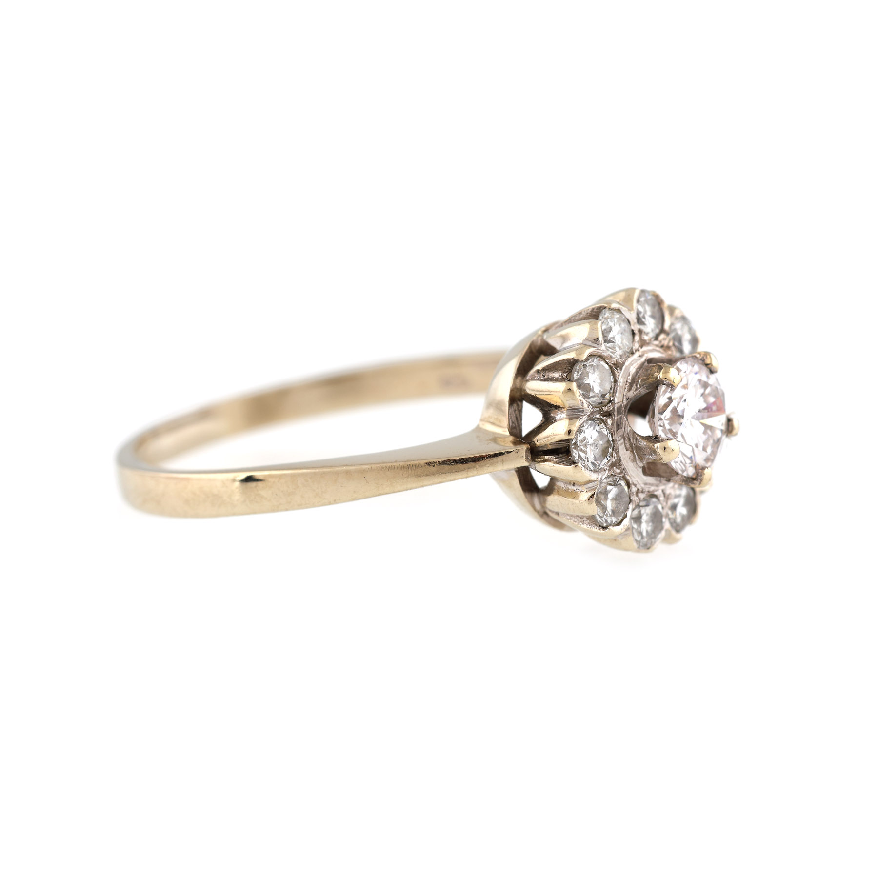 1 diamant rotund briliant, culoare G-H, claritate SI2, cca. 0,41 ct. și 10 diamante rotunde briliant, culoare G-H, claritate SI, cca. 0,35 ct.
