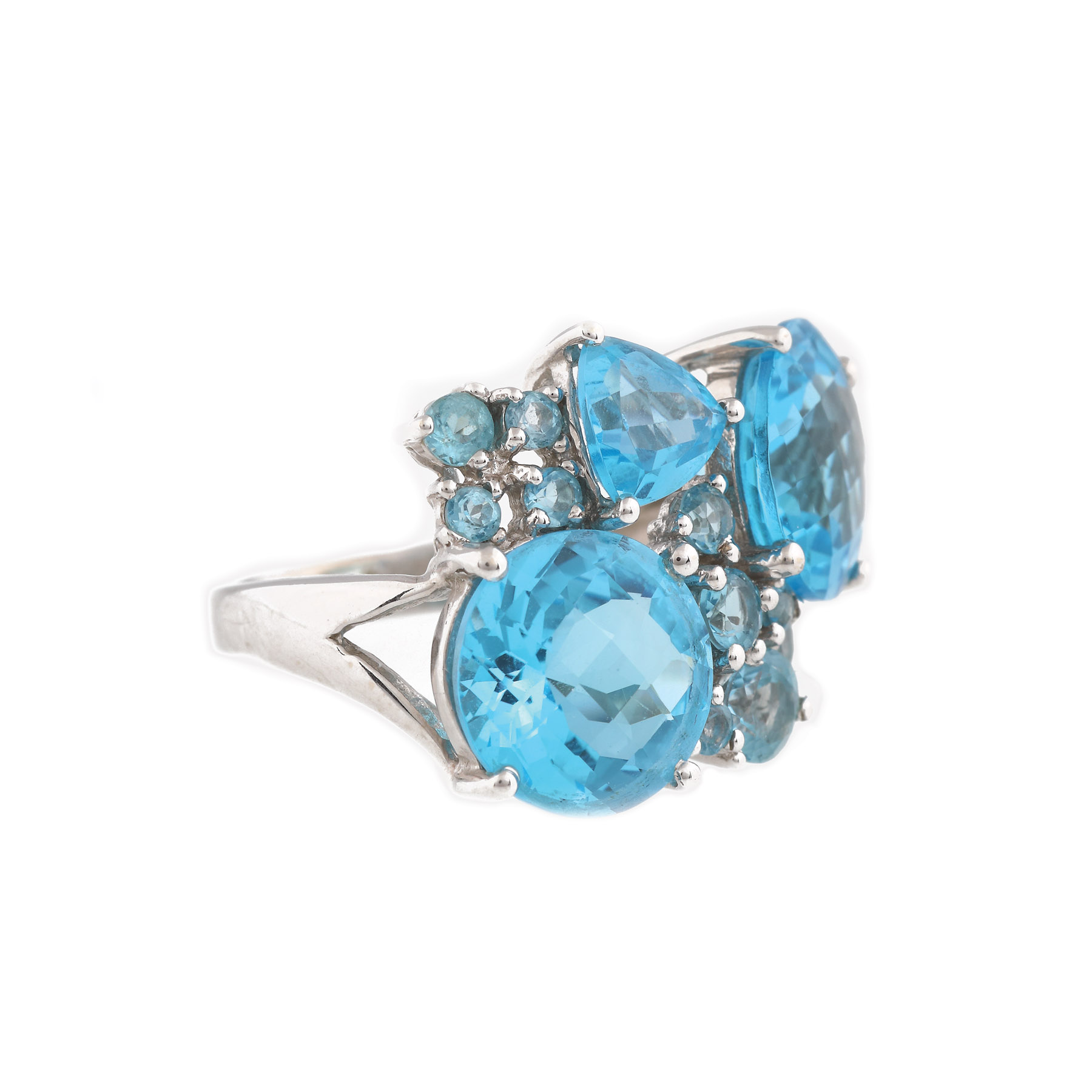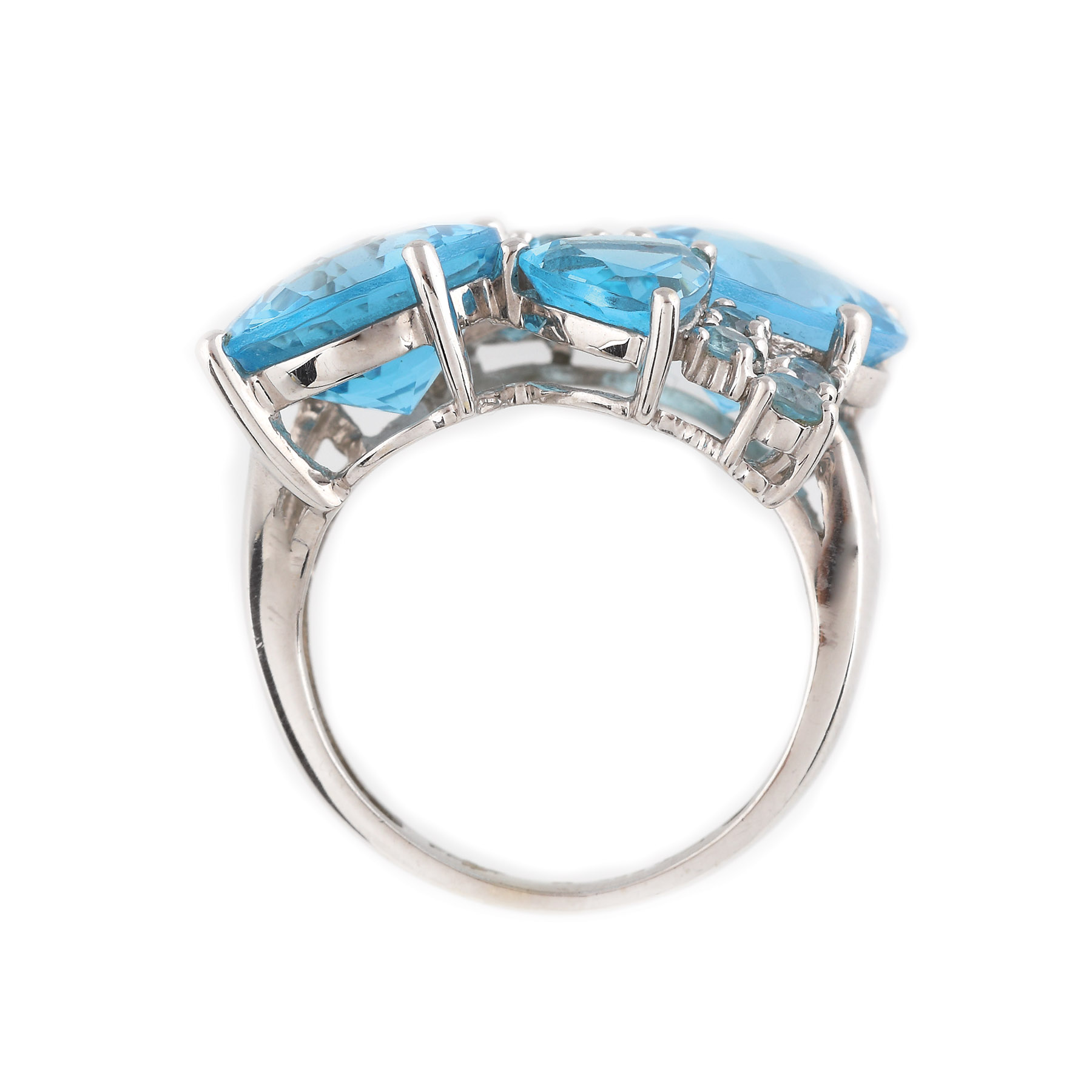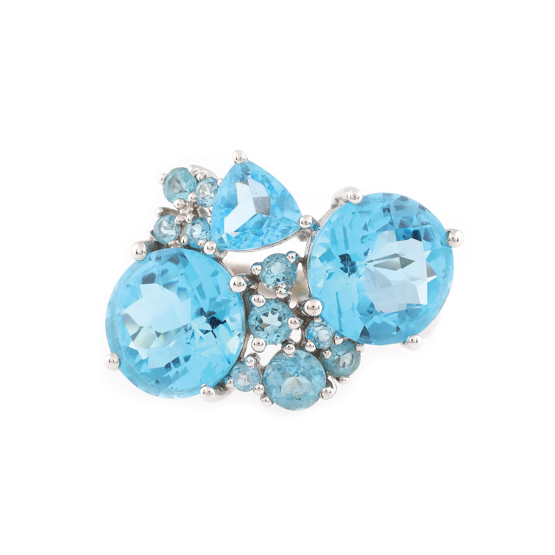 13 topaze (12 rotund fațetate, 1 triunghi fațetat), culoare bleu, claritate eye-clean, cca. 8,5 ct.