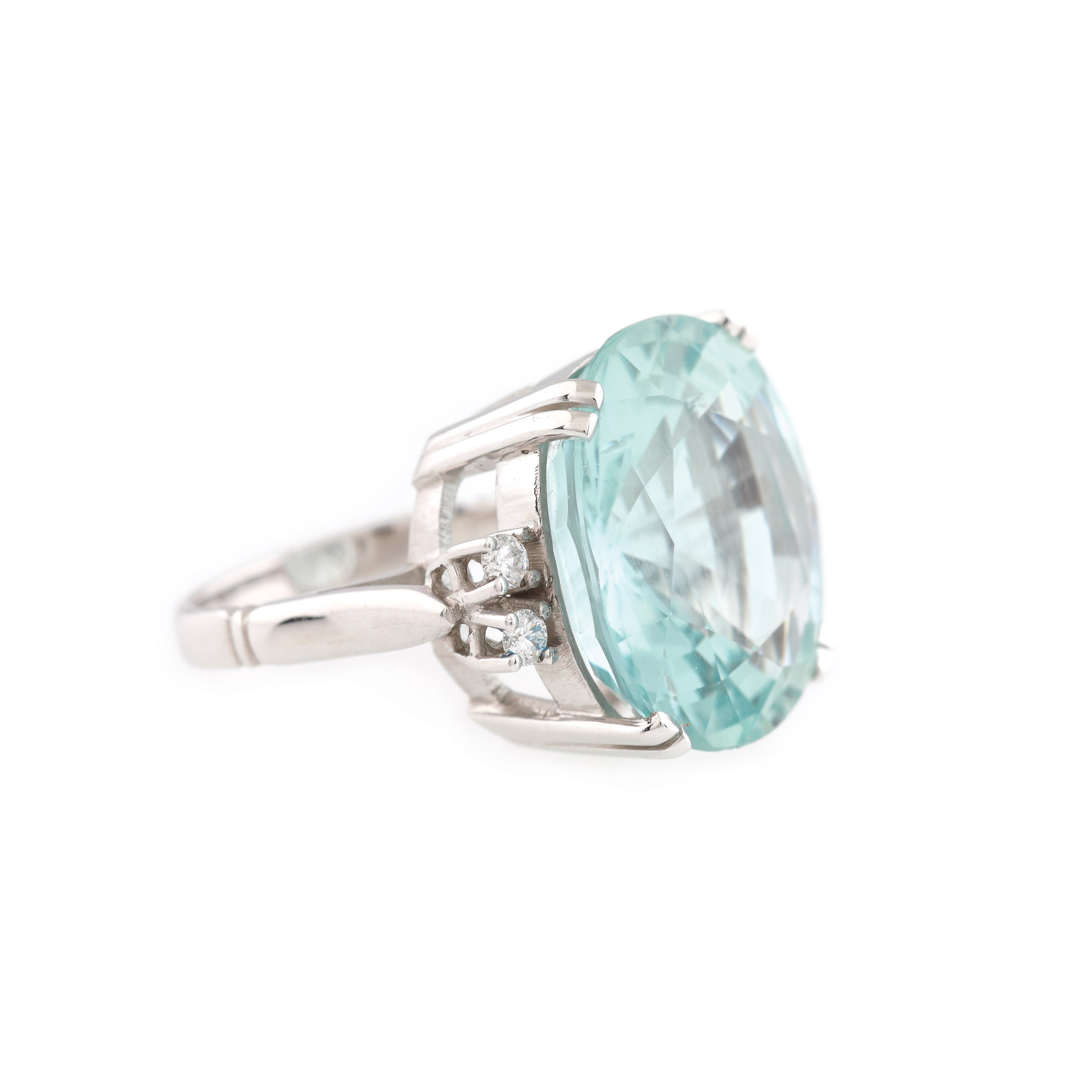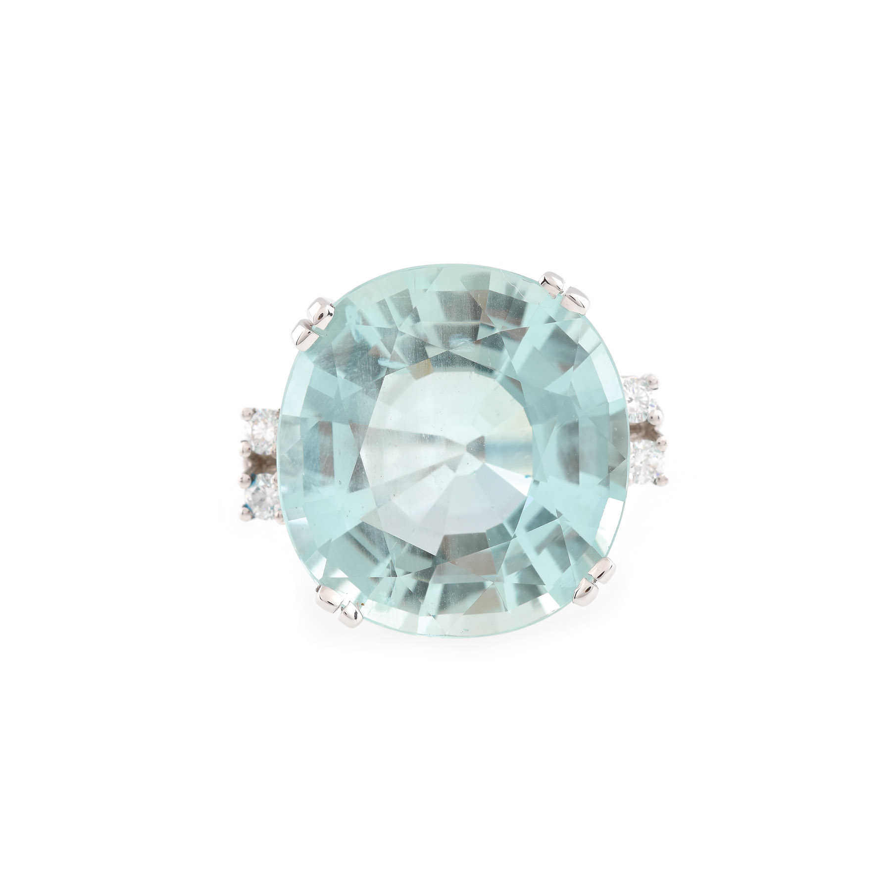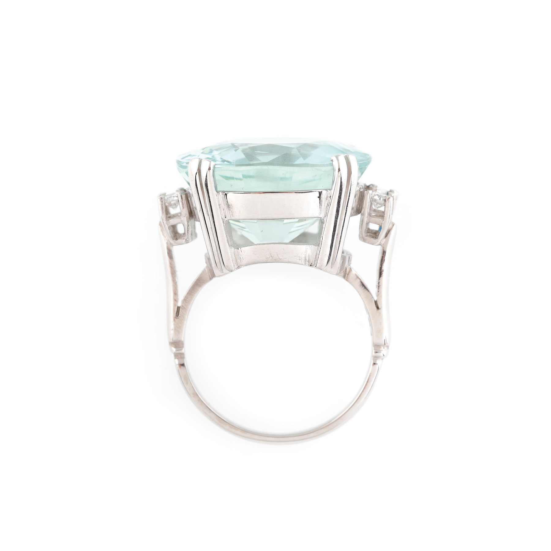 41. Inel din aur alb, ornat cu impunător acvamarin și diamante