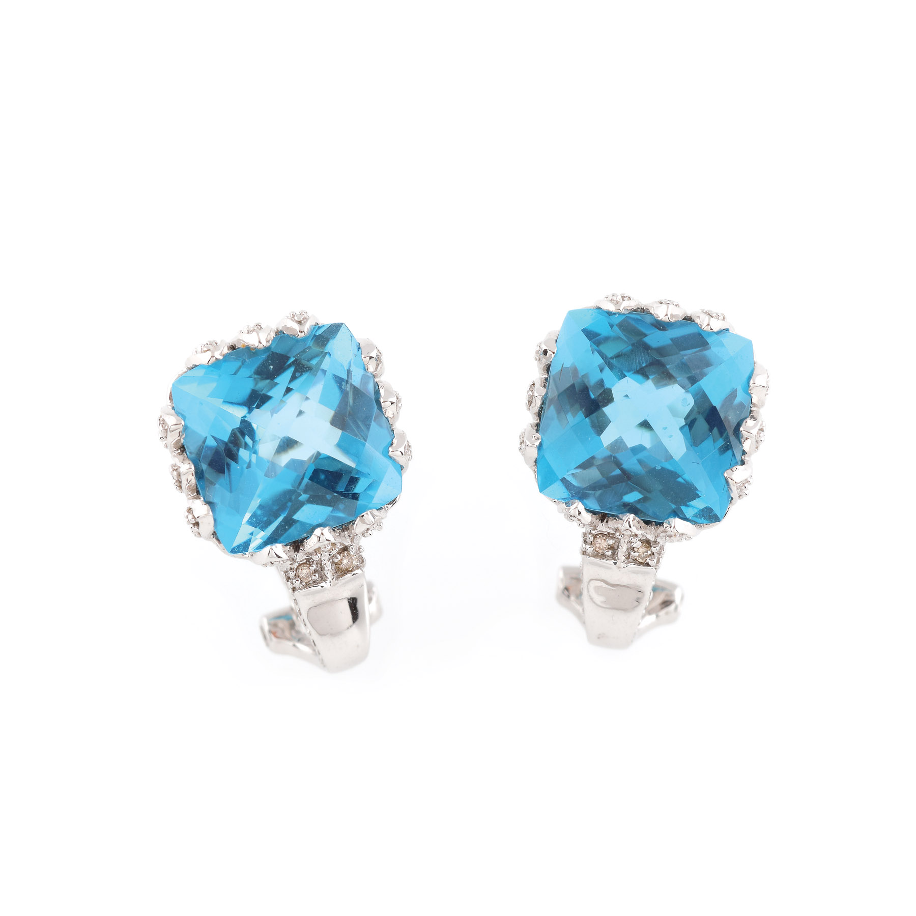 39. Pereche de cercei din aur alb, decorată cu topaze și diamante