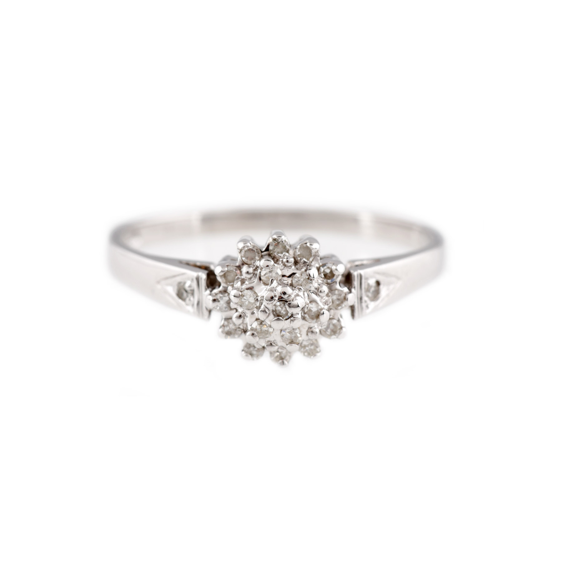 40 diamante (19 rotunde briliant, 21 single cut) culoare G-H, claritate SI-I2, cca. 0,37 ct.