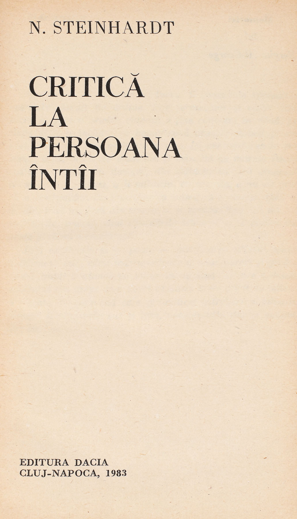 8. ”Critică la persoana întâi”, de Nicolae Steinhardt, Cluj-Napoca, 1983, cu dedicația olografă a autorului