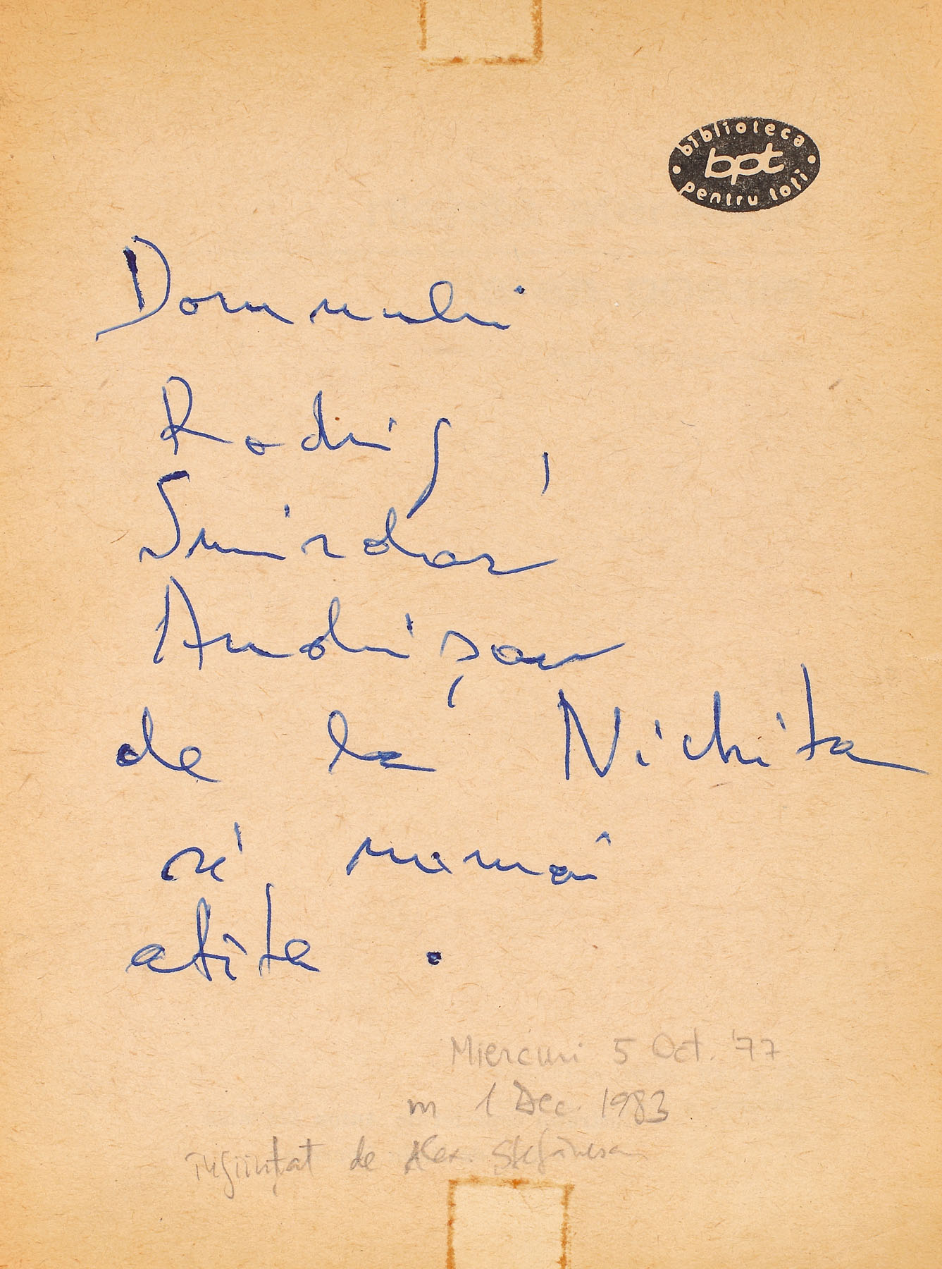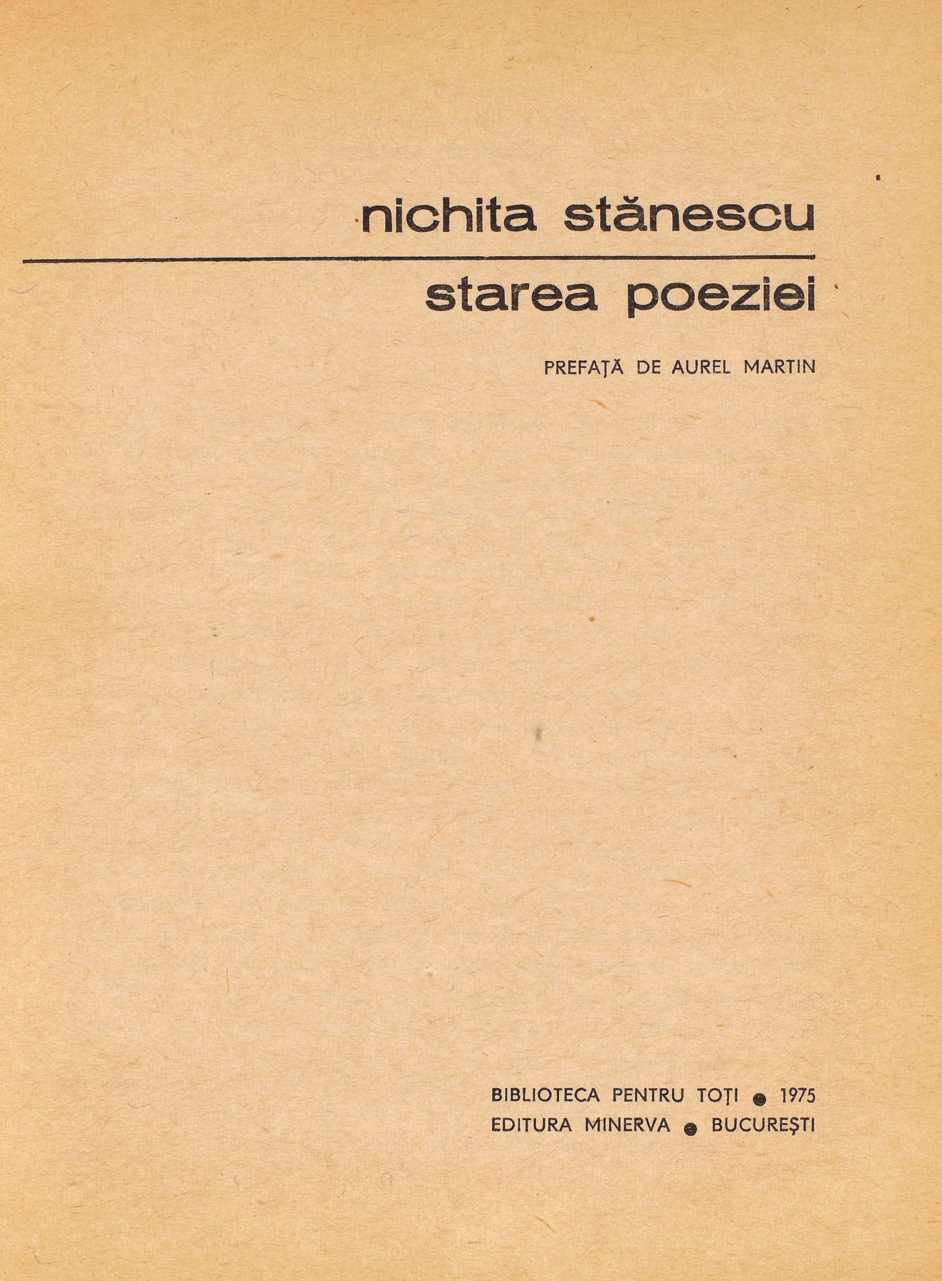 7. ”Starea poeziei”, de Nichita Stănescu, București, 1975, cu dedicația olografă a autorului