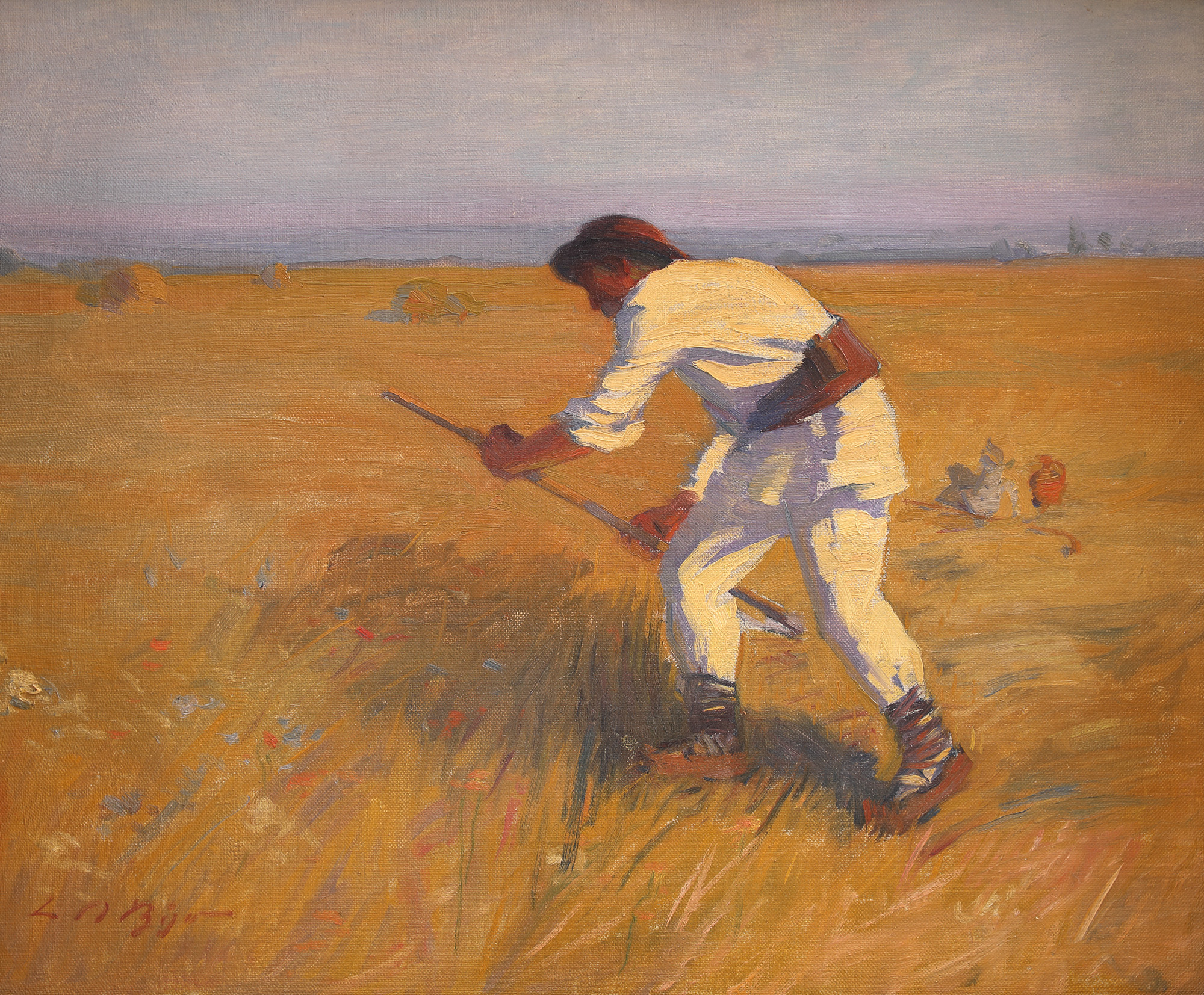 semnat stânga jos, cu roșu, "L.A. Biju"