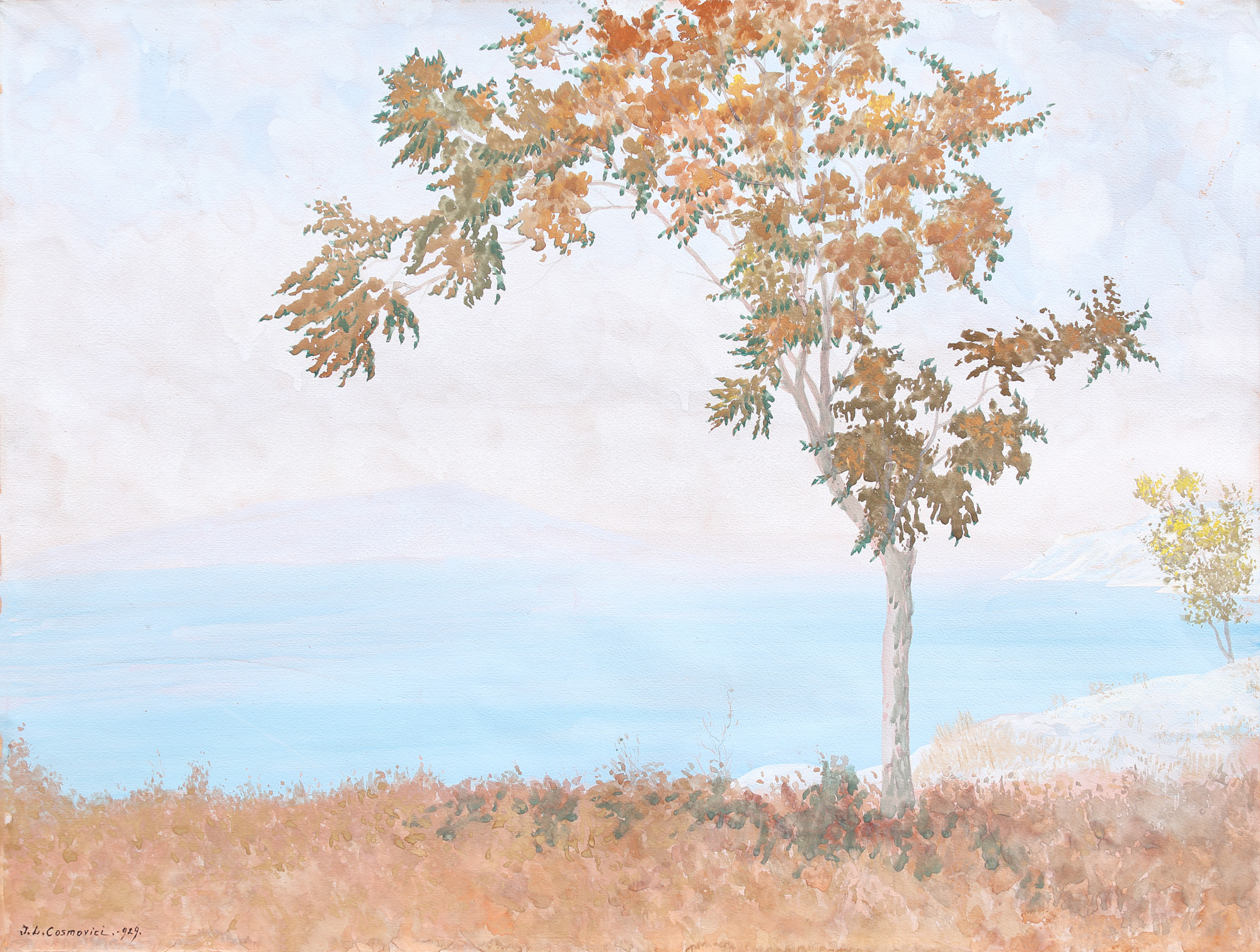semnat și datat stânga jos, cu negru, "J.L. Cosmovici, (1)929"