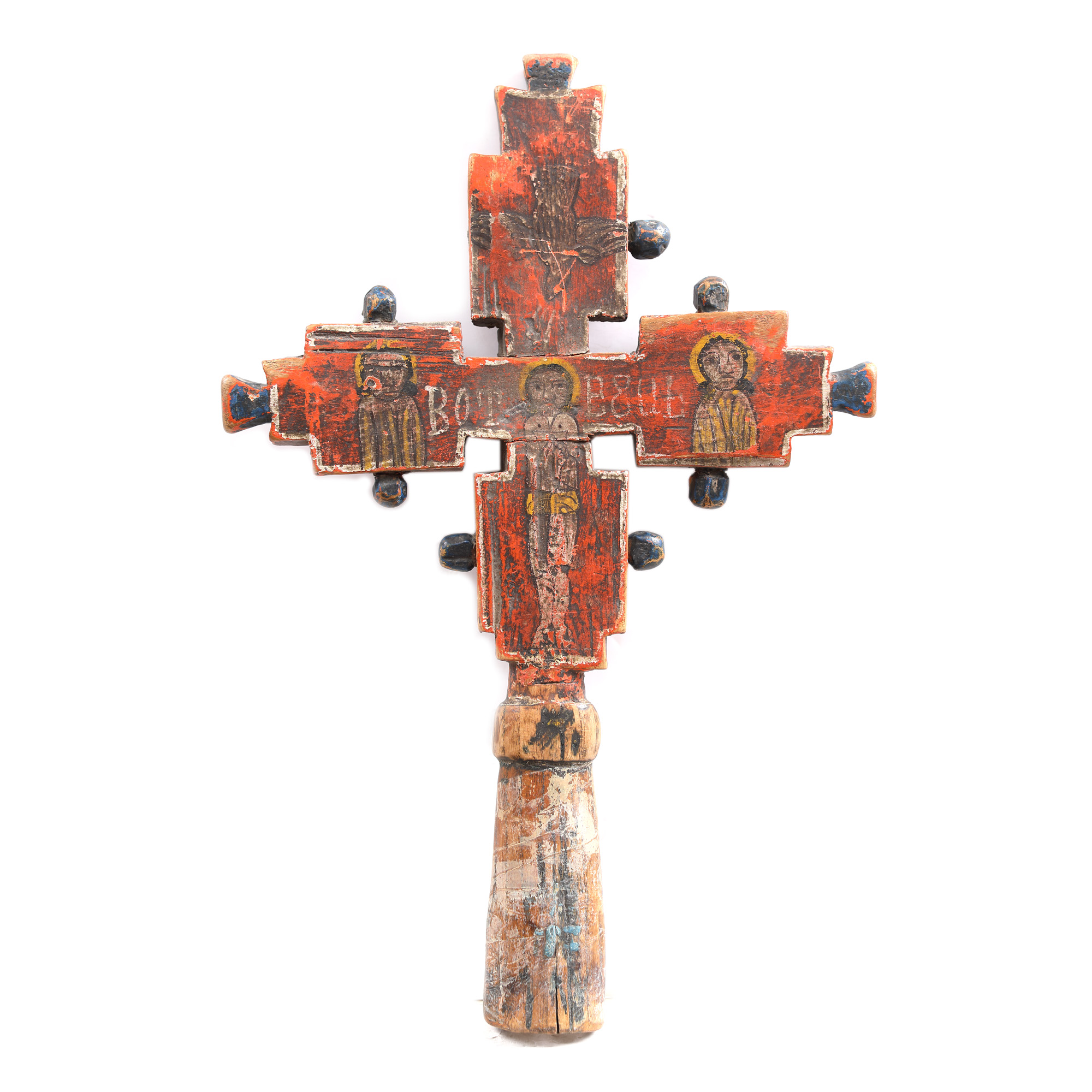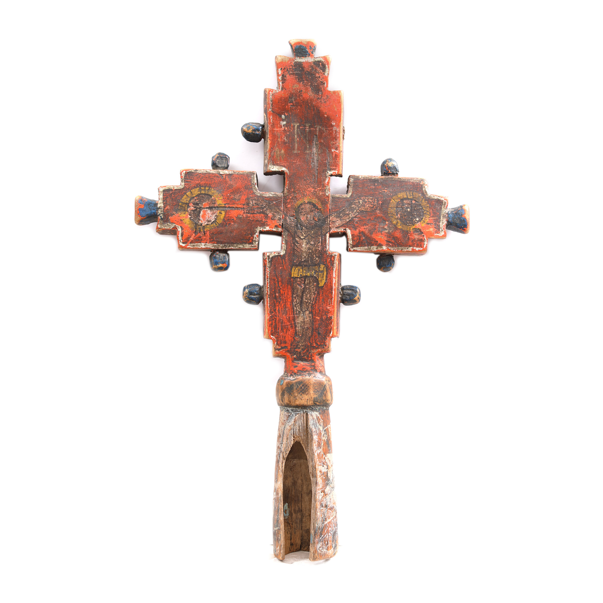 58. Cruce de mână, decorată cu scenele ”Răstignirii” și ”Botezului”, posibil atelier din Banat, a doua jumătate a sec. XIX