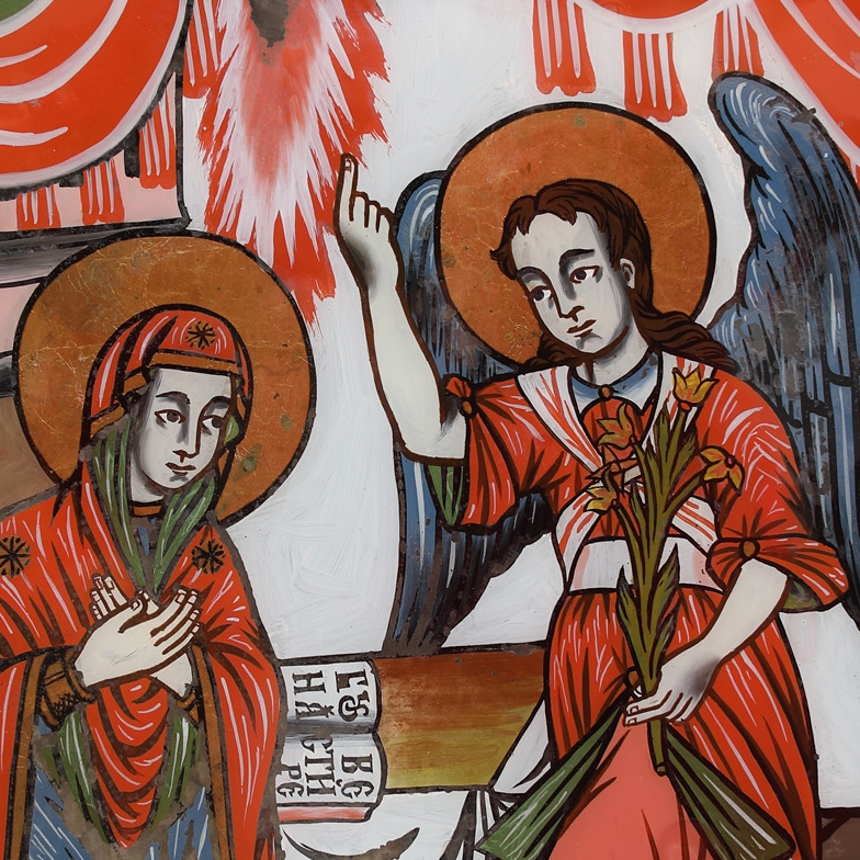 20. Icoană pe glajă, ”Buna Vestire”, zugrav Ioan Pop, Făgăraș, 1856, piesă rară, de colecție