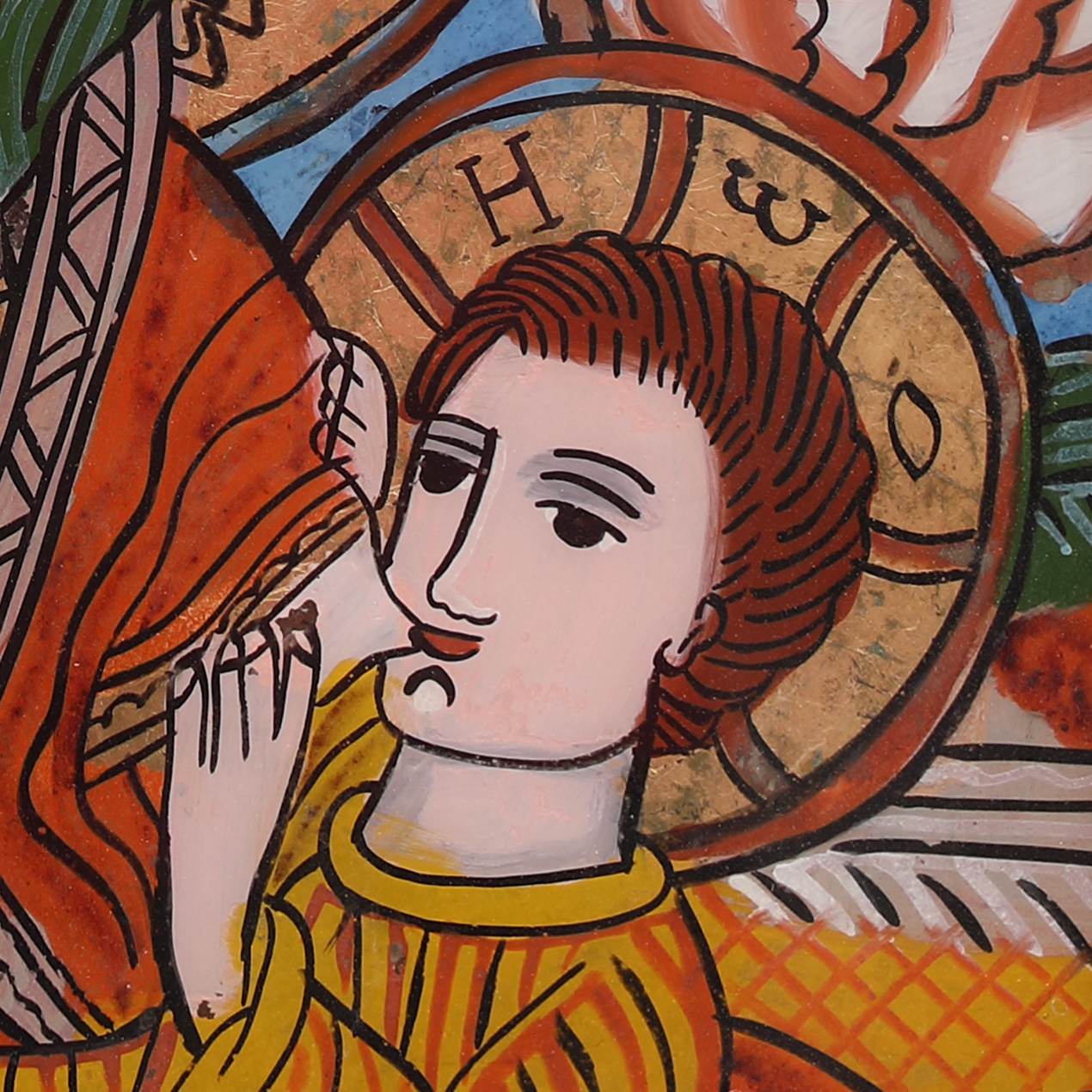 tempera și foiță de aur pe glajă, ramă băițuită, cu șforț