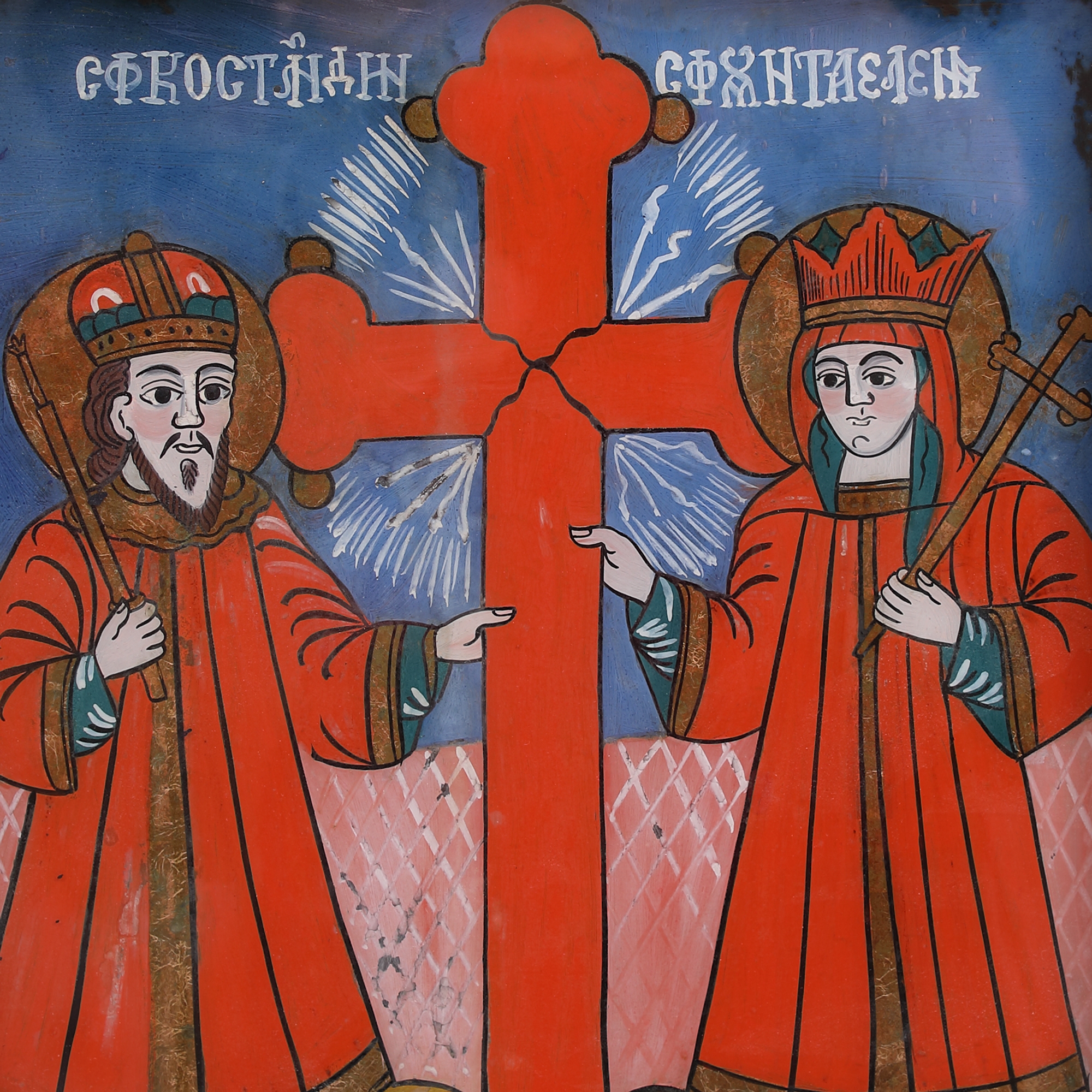 29. Icoană pe glajă, ”Sfinții Împărați Constantin și Elena”, atelierul familiei Grecu, Săsăuș, a doua jumătate a sec. XIX, de colecție