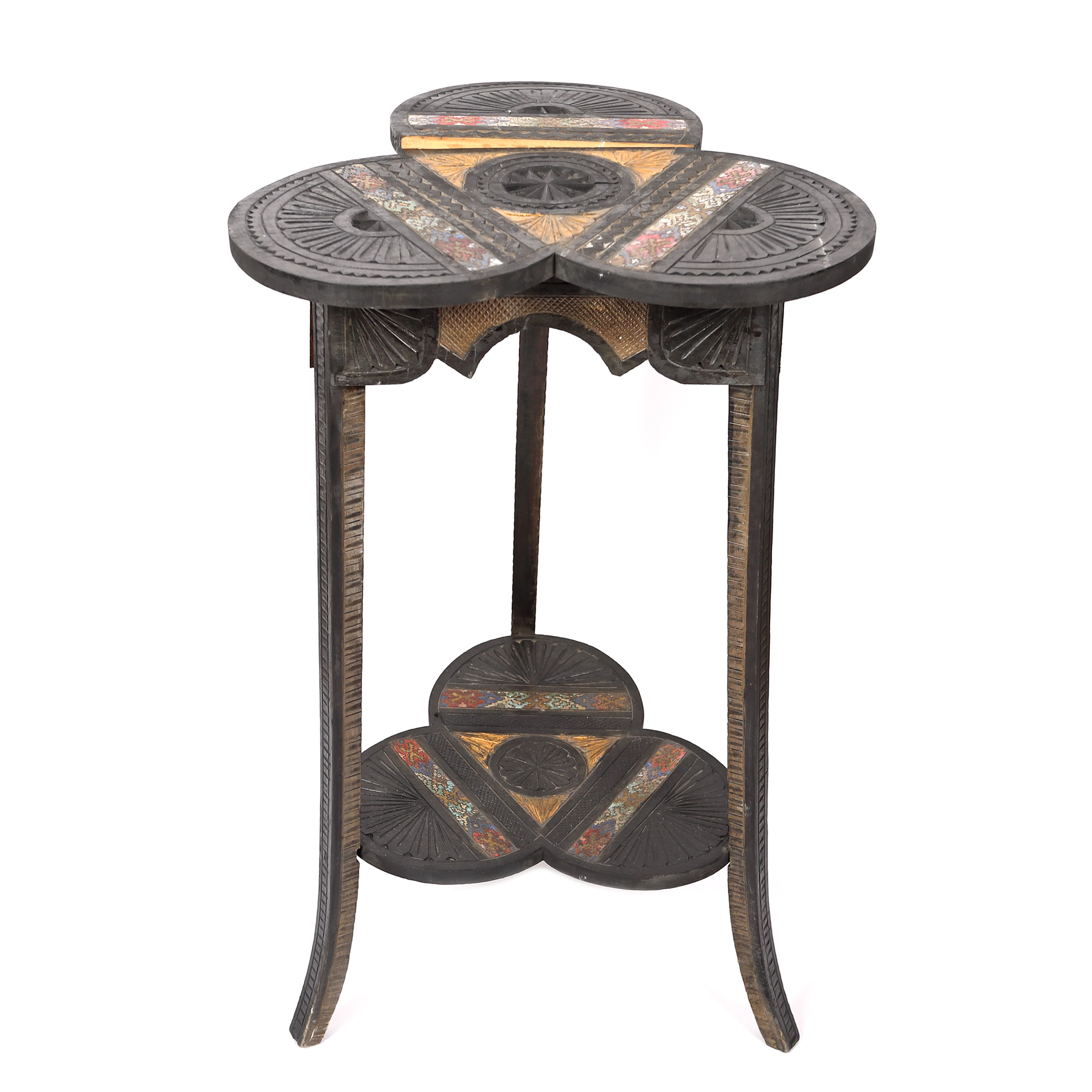 24. Măsuță decorată în stil Neo-Românesc, din lemn de tei, prima jumătate a sec. XX