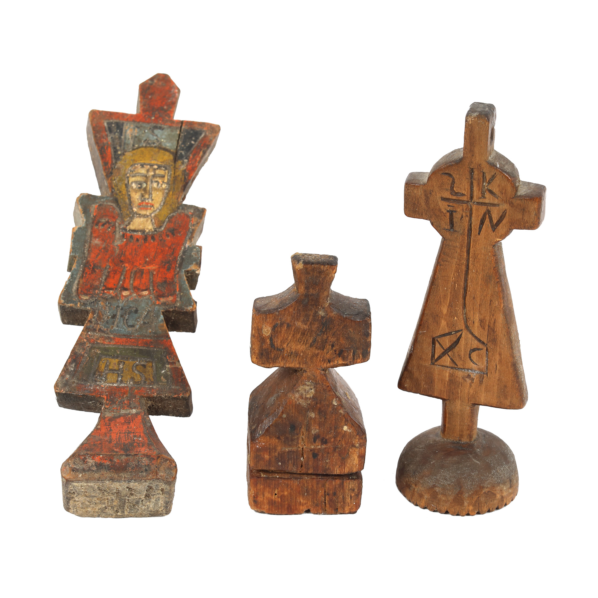 9. Lot format din trei pristolnice din lemn, dintre care unul pictat, sec. XIX