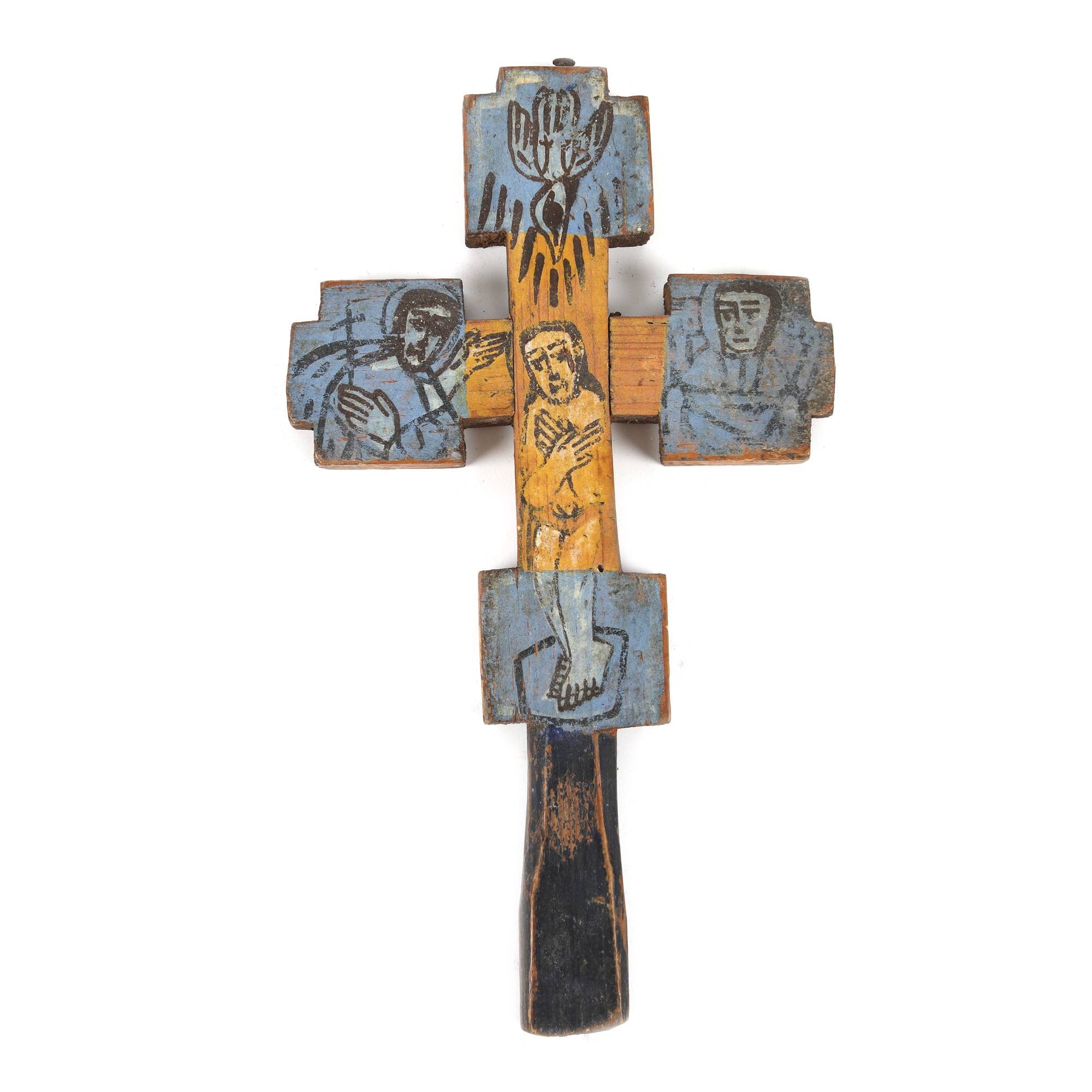 7. Cruce de mână, pictată cu scena ”Răstignirii”, școală românească, zona Apuseni, cca. 1900