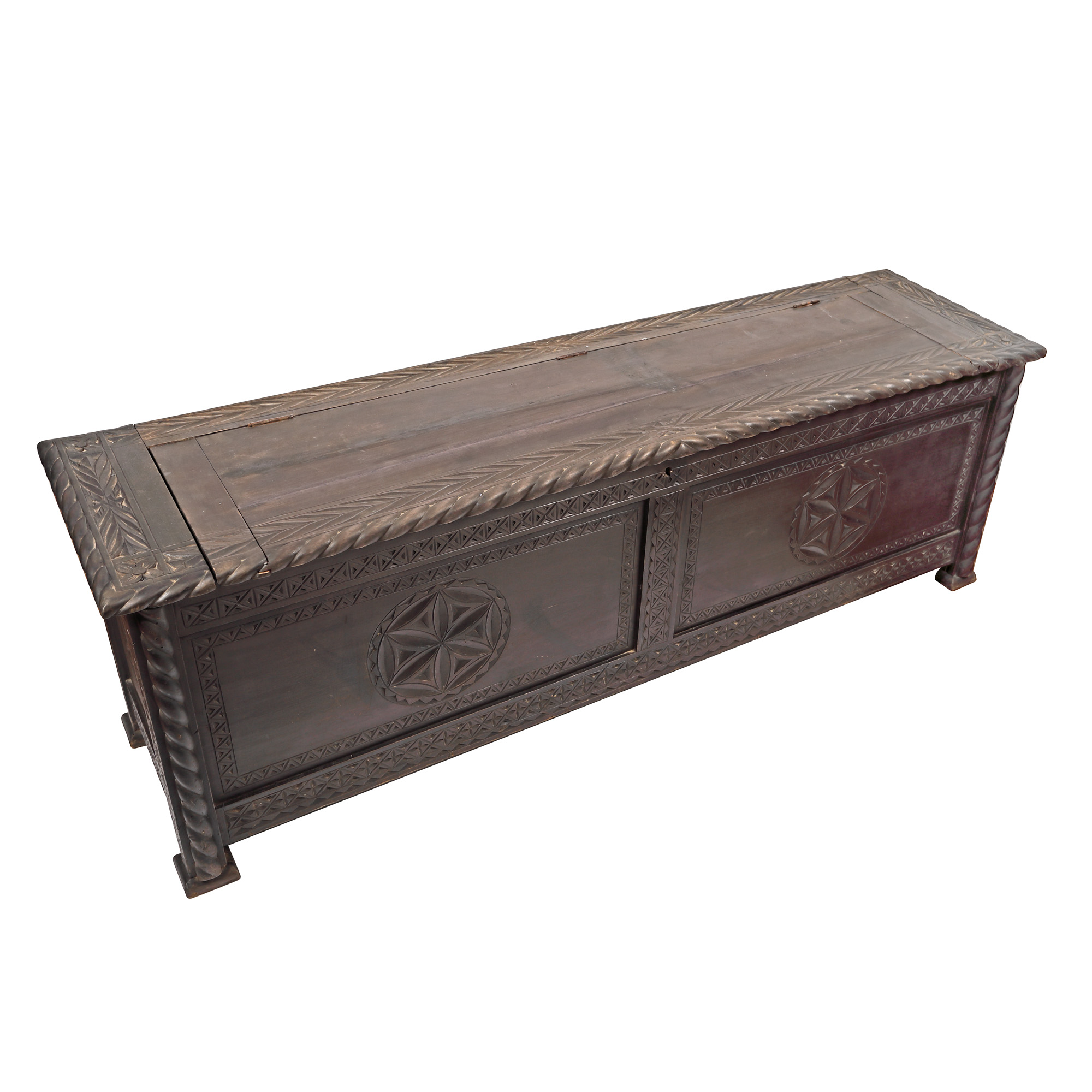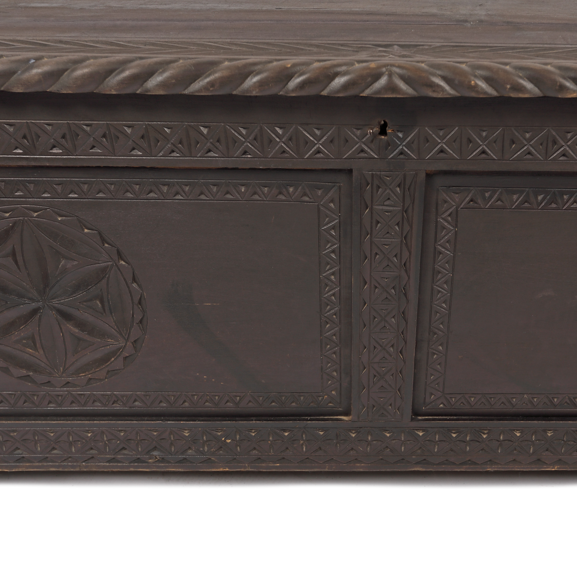 2. Ladă de zestre Neo-Românească, decorată cu motive geometrice, prima jumătate a sec. XX