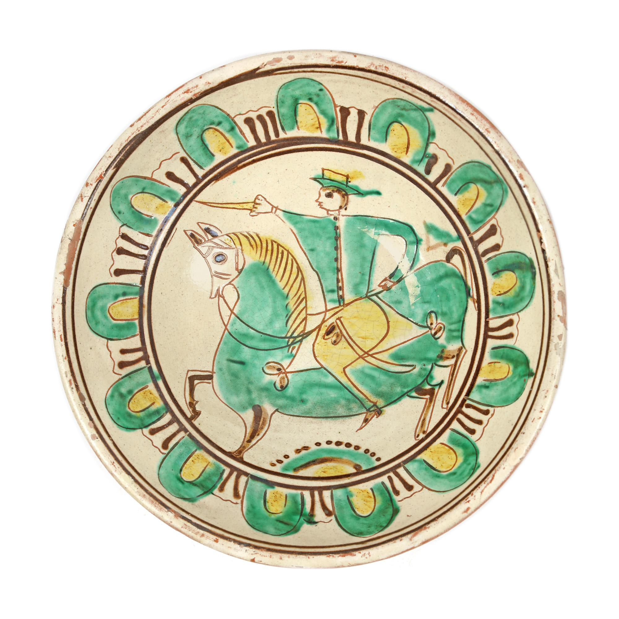 argilă comună, angobă, pigmenți minerali, smalț plombifer