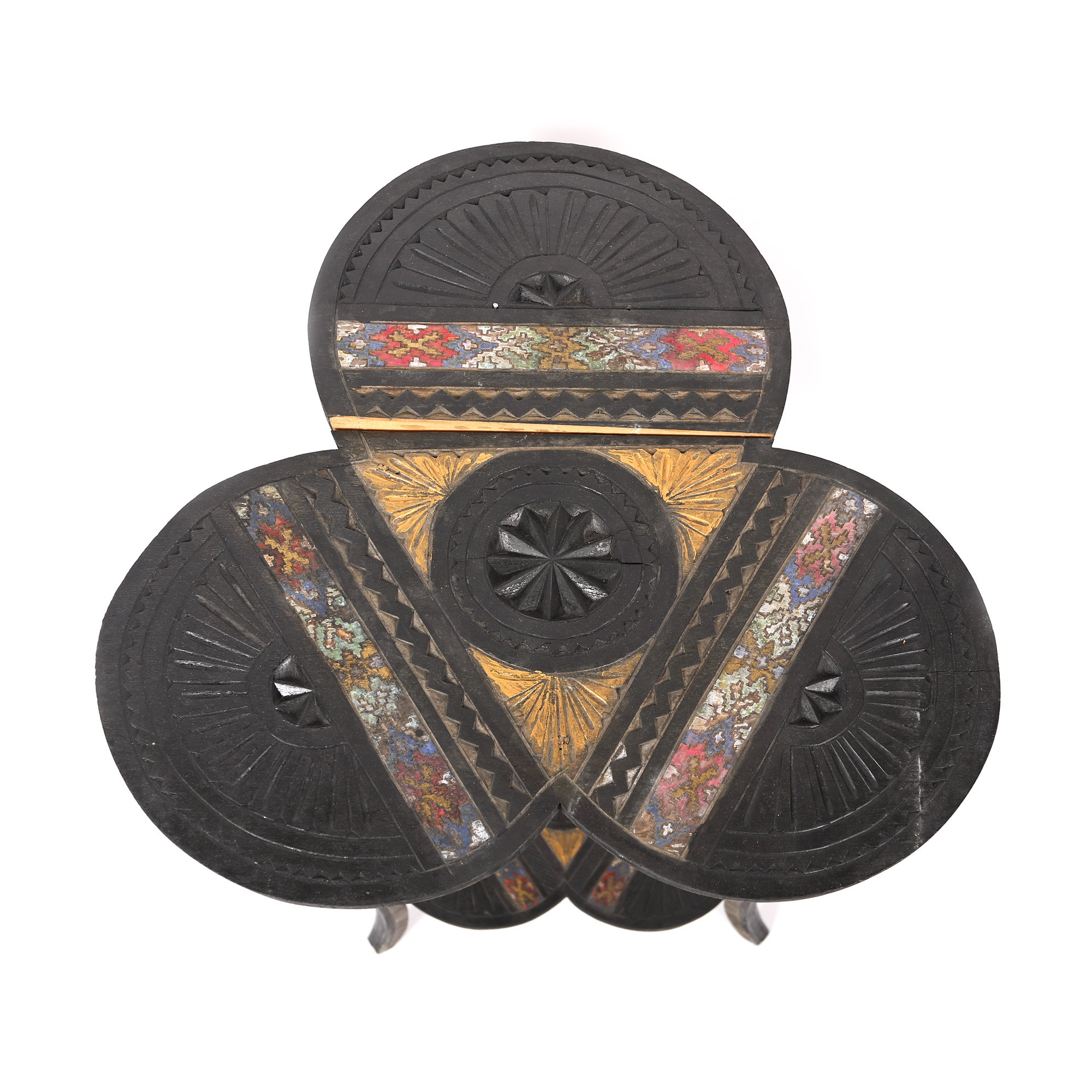 3. Măsuță decorată în stil Neo-Românesc, din lemn de tei pictat, prima jumătate a sec. XX