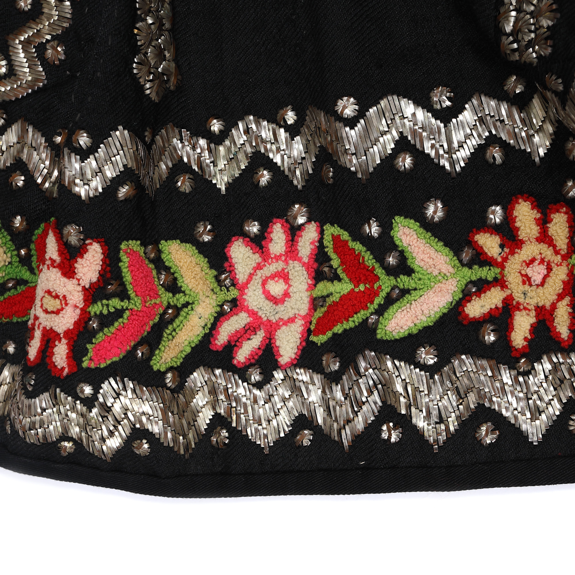 21. Vestă decorată cu tel argintat și cusătură în tehnica persană, zona Mehedinți, perioada interbelică, provine din colecția Iuliei Gorneanu