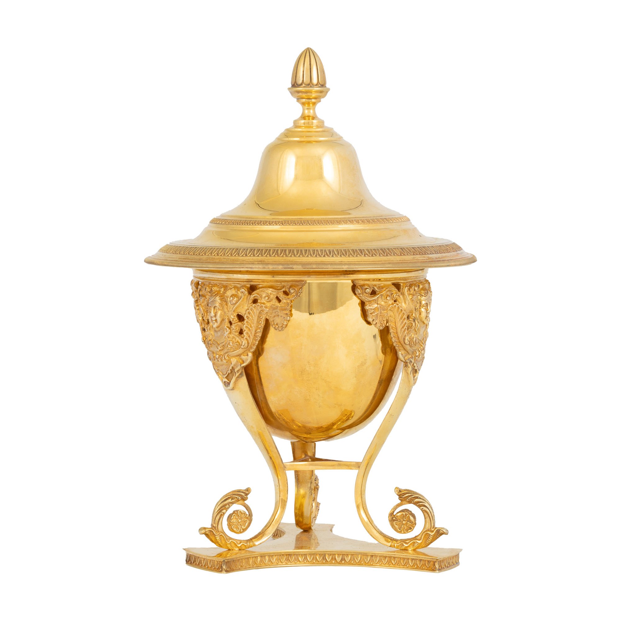 48. Recipient pentru caviar, din argint aurit, cu capac, începutul sec. XX