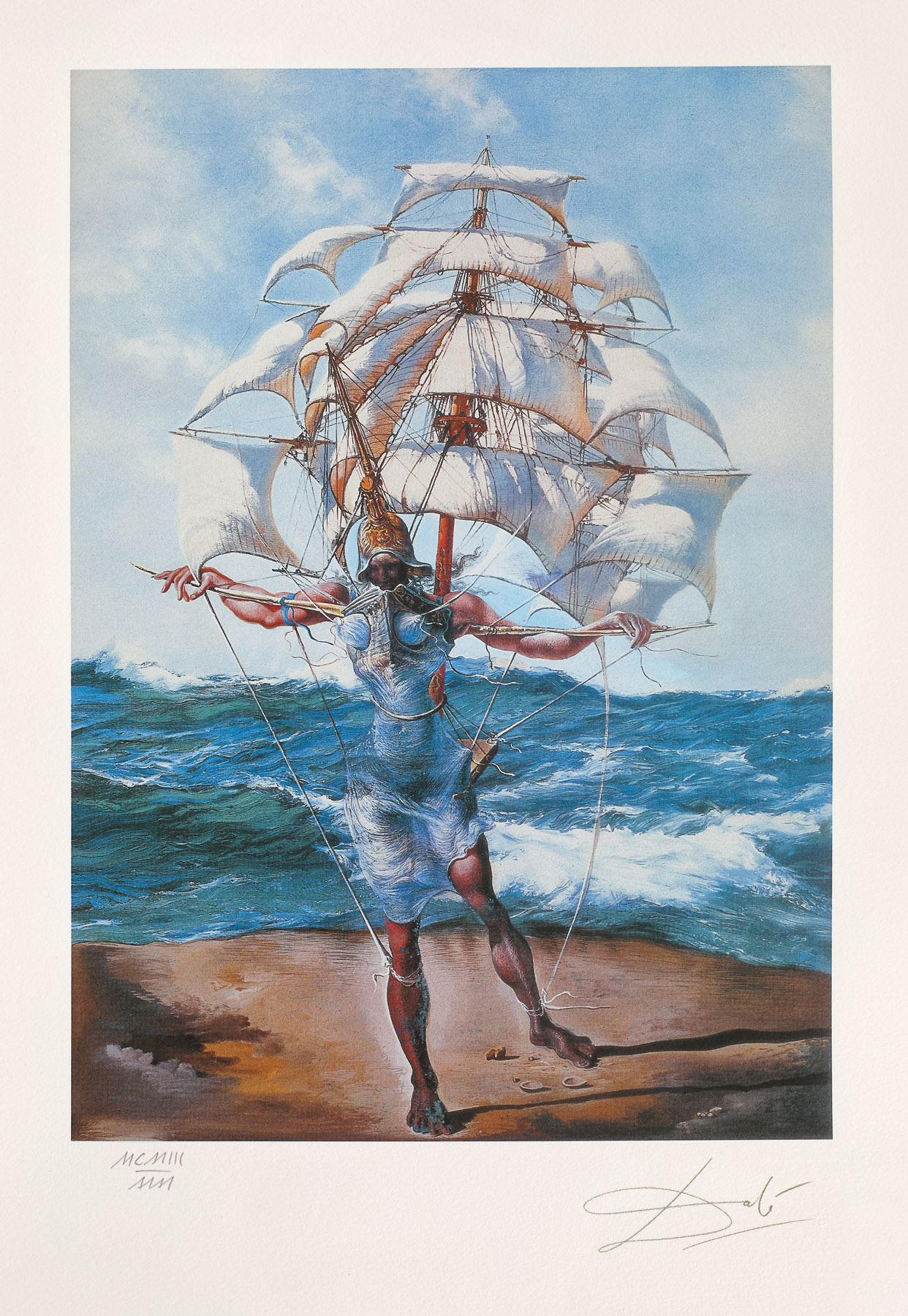 semnat, gravat, dreapta jos, sub cadru, "Dali"; numerotat stânga jos, sub cadru, în creion, "MCMIII/MM", stânga jos, ștampila editurii, ”G. Dali”