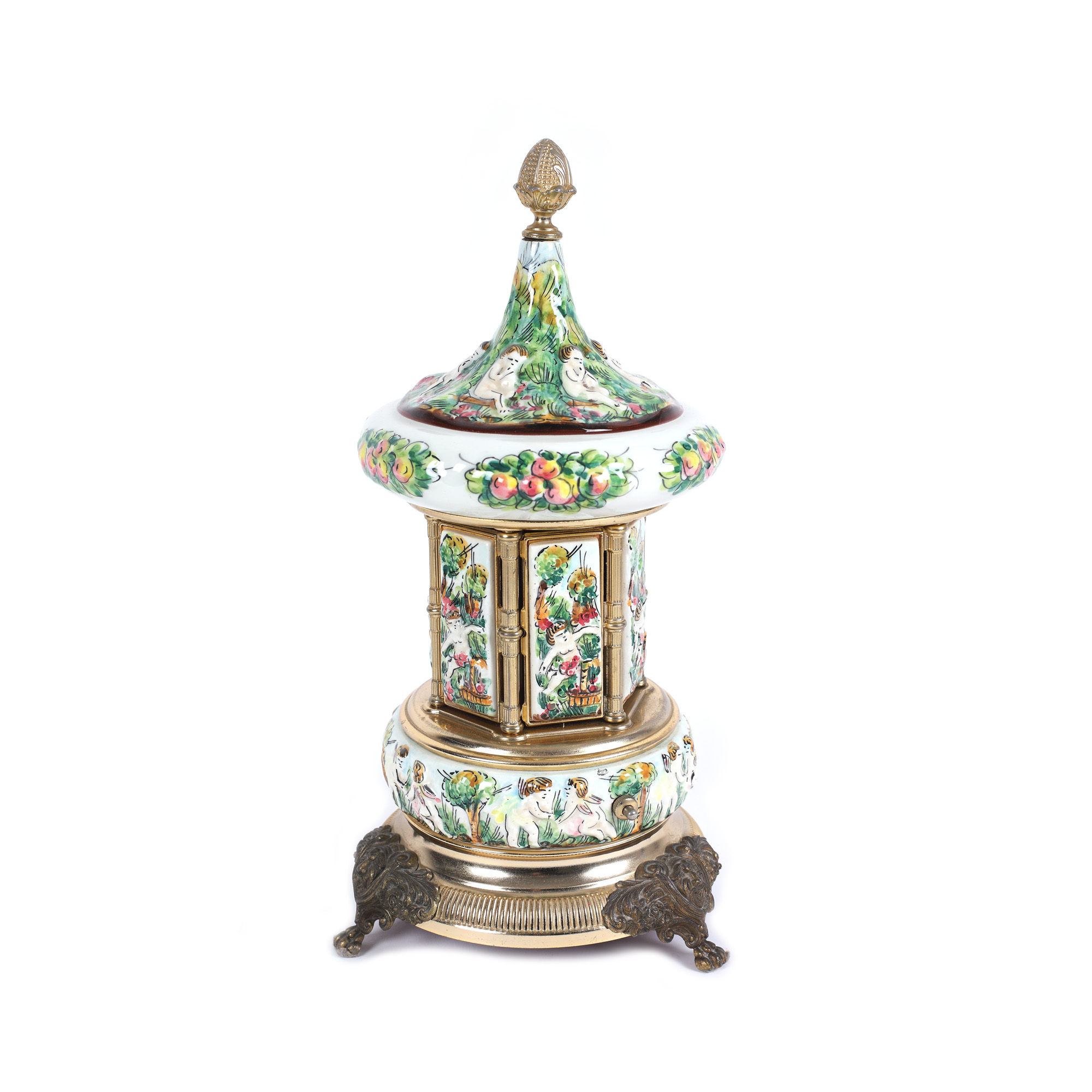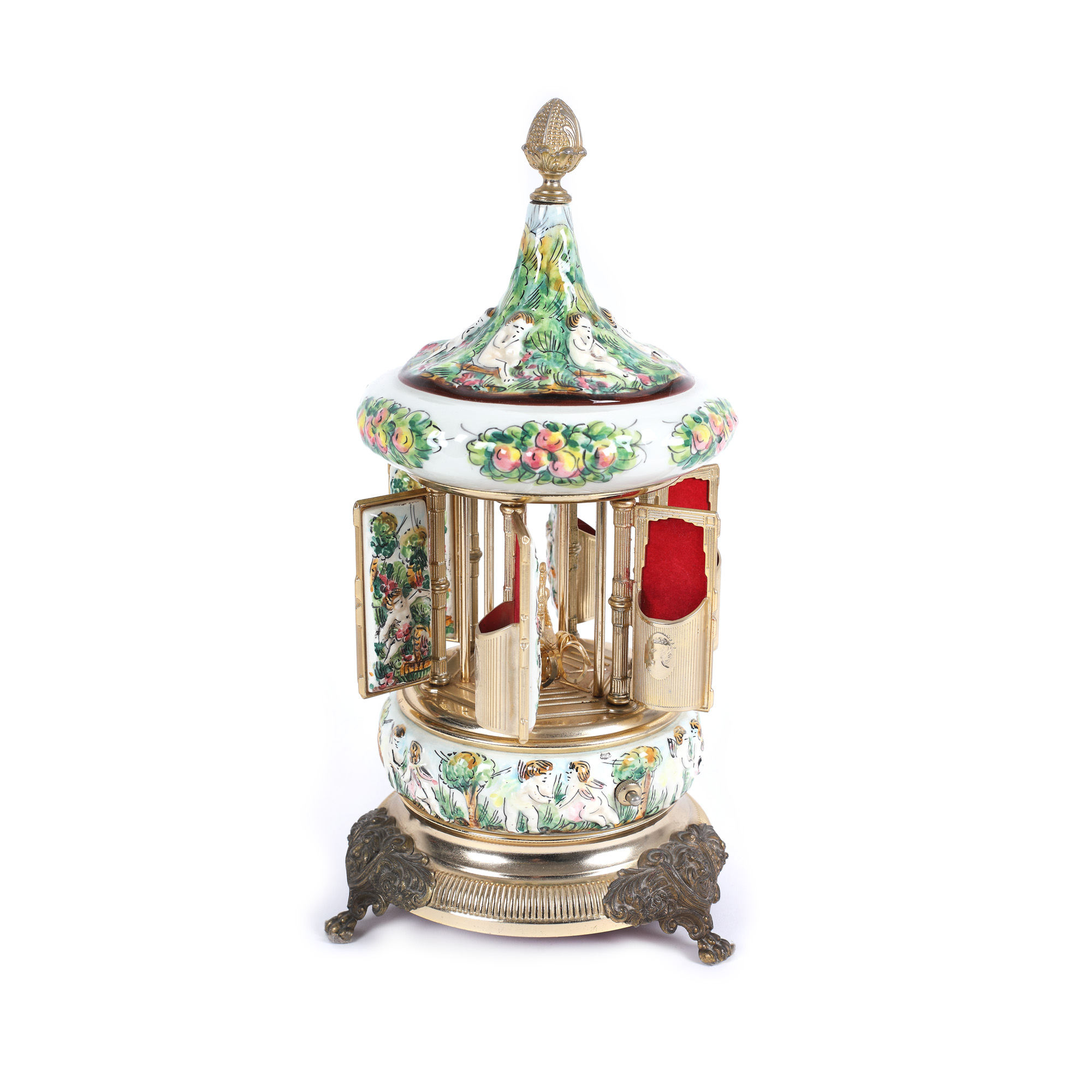 45. Cutie muzicală pentru ruj și țigări, decorată cu ceramică în manieră Capodimonte, Italia, cca. 1950