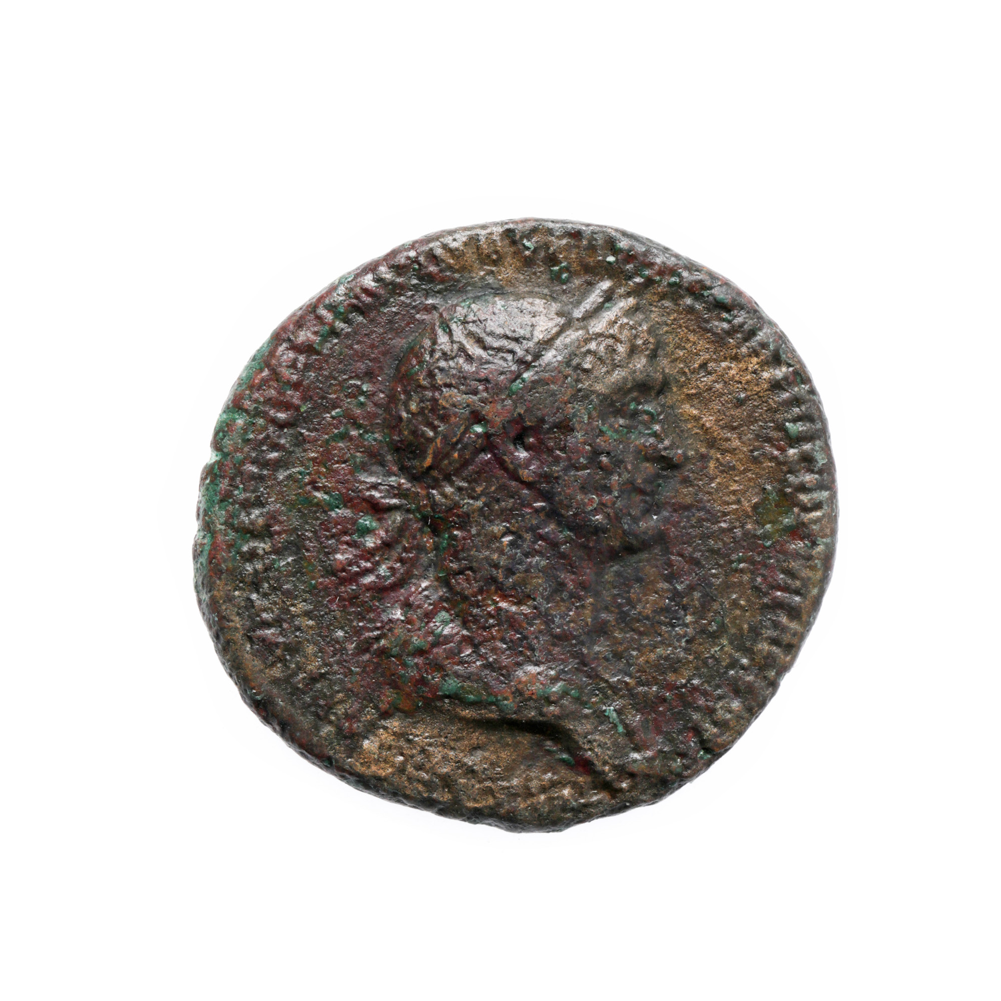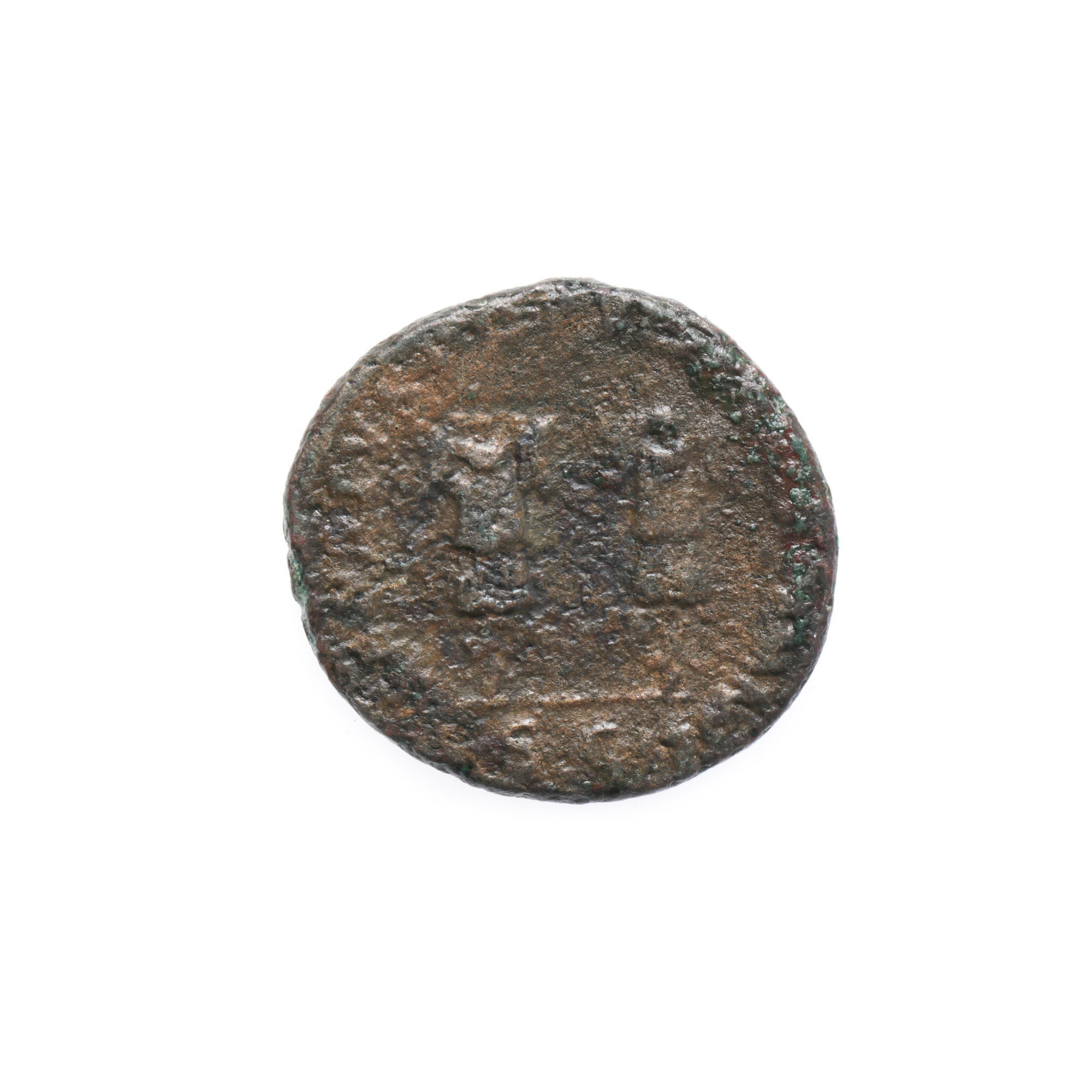 56F. Monedă As, Traian, tip dublu trofeu al armelor, 114-117 e.n.