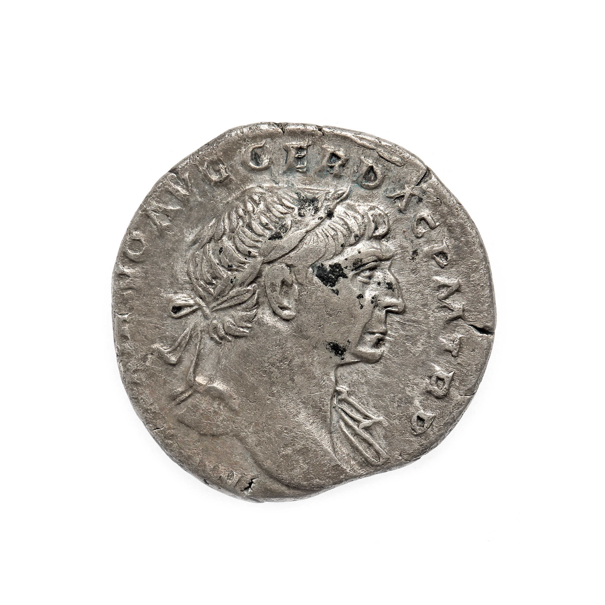 39F. Monedă Denarius, Traian, tip Dac Captiv în picioare, 108 e.n., argint