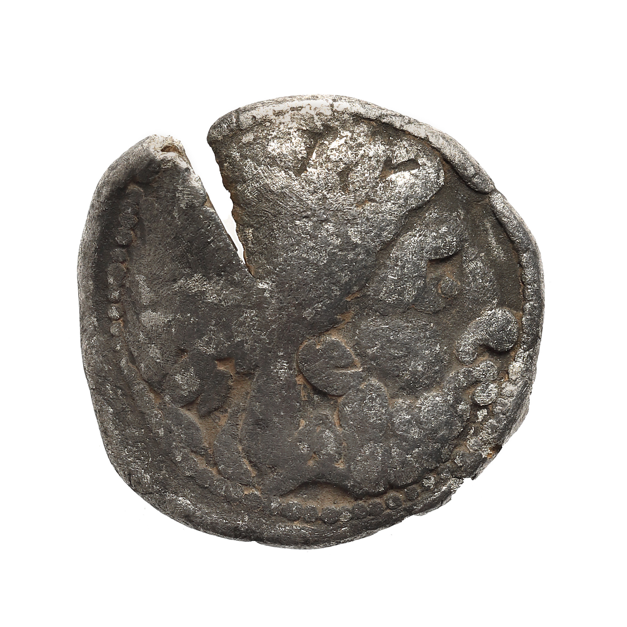 11IT. Monedă Tetradrahmă celtică, Dunărea de Jos, tip cu efigia lui Zeus celticizată pe avers, secolele III-I î.e.n., argint