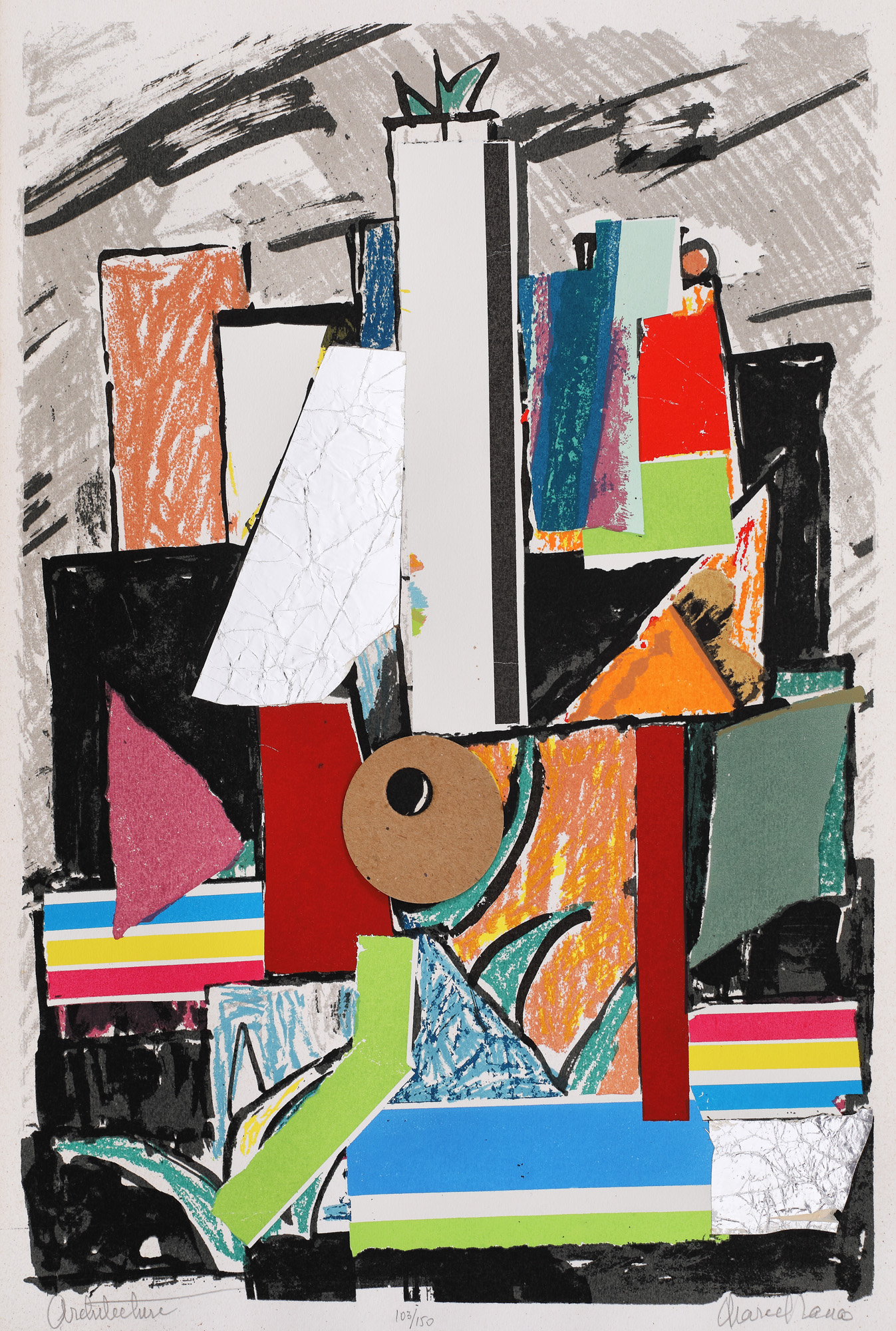 semnat dreapta jos, în creion, "Marcel Iancu"; intitulat stânga jos, în creion, "Architecture"; numerotat central jos, în creion, "103/150"