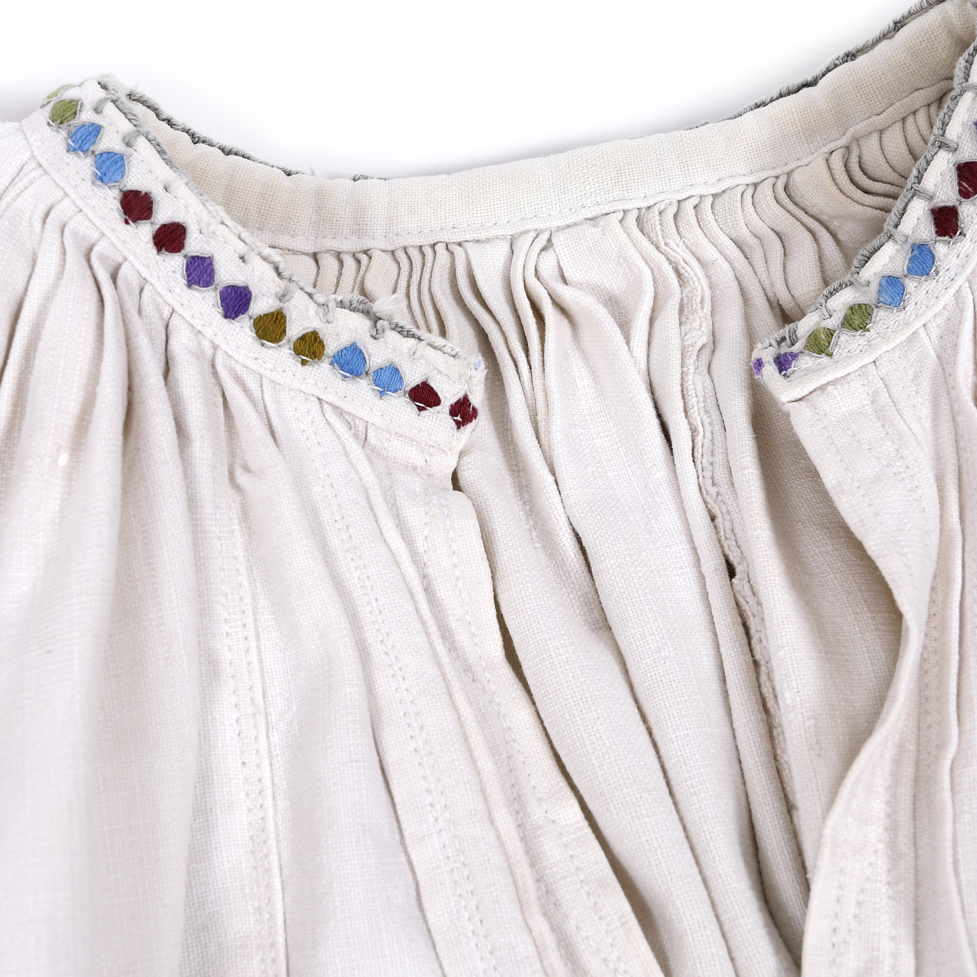 18. Cămașă (ie) din pânză de casă, cu decor geometric minimalist, zona Bistrița, perioada interbelică