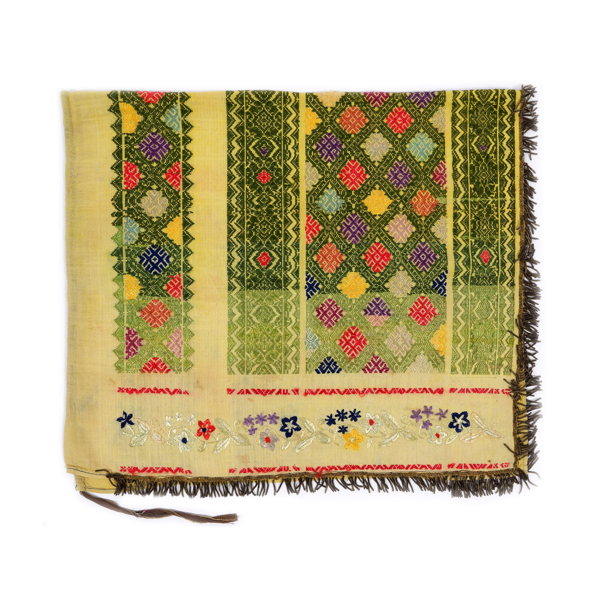17. Lot format dintr-o maramă și un vâlnic din mătase cu decor geometric, Muntenia, perioada interbelică