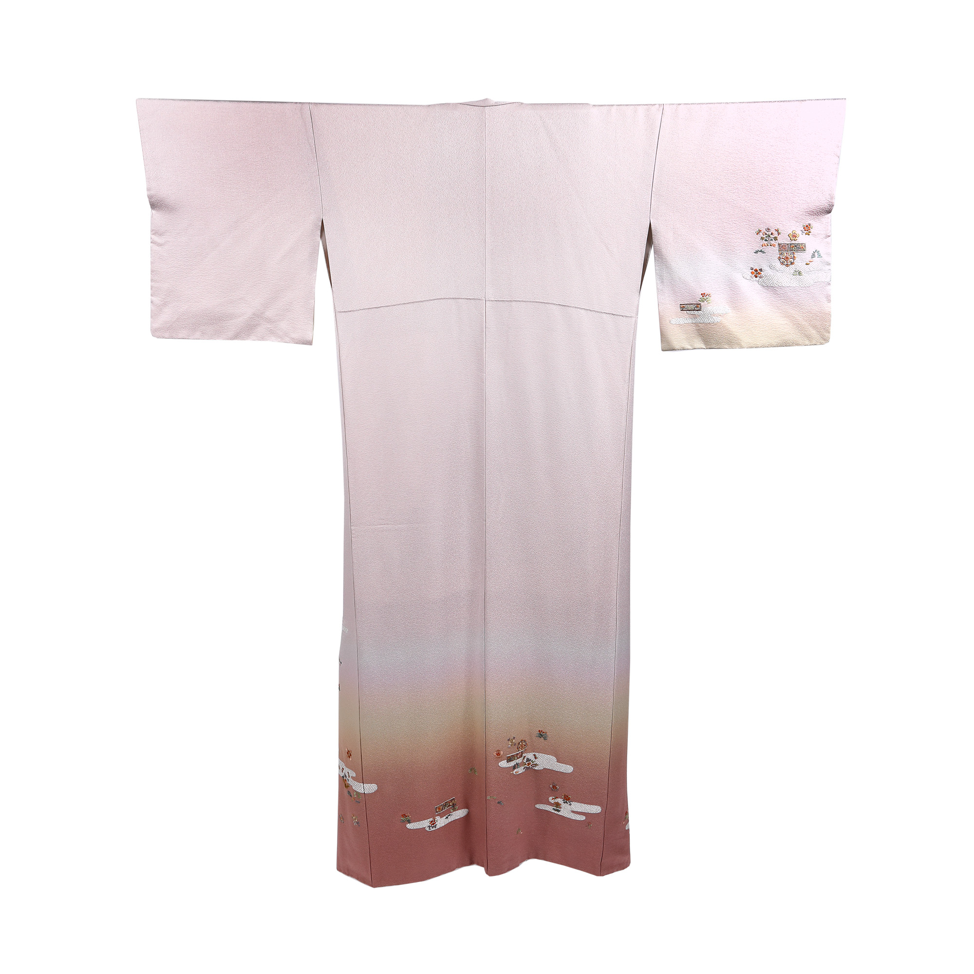 Kimono purtat la ocazii speciale care are același decor pe umeri, mâneci și deasupra tivului. Este din mătase într-un degrade realizat manual, prezintă broderii cu fir de mătase și argint; cusut, brodat și asamblat manual. Interiorul este din mătase în degrade realizat manual. Obiul este țesut manual, decorat cu motive acvatice, bogat ornamentat, face parte din ansamblul kimonoului.