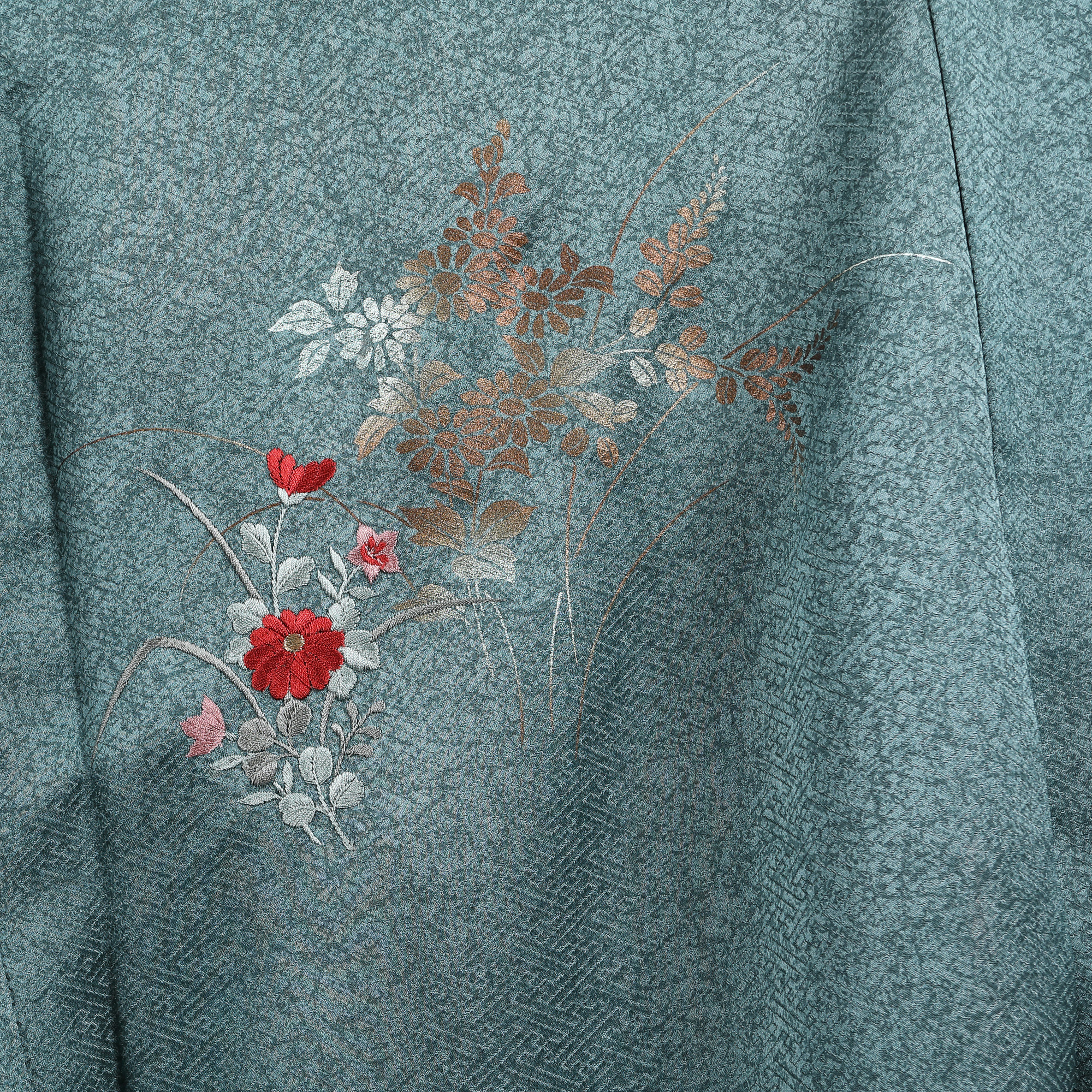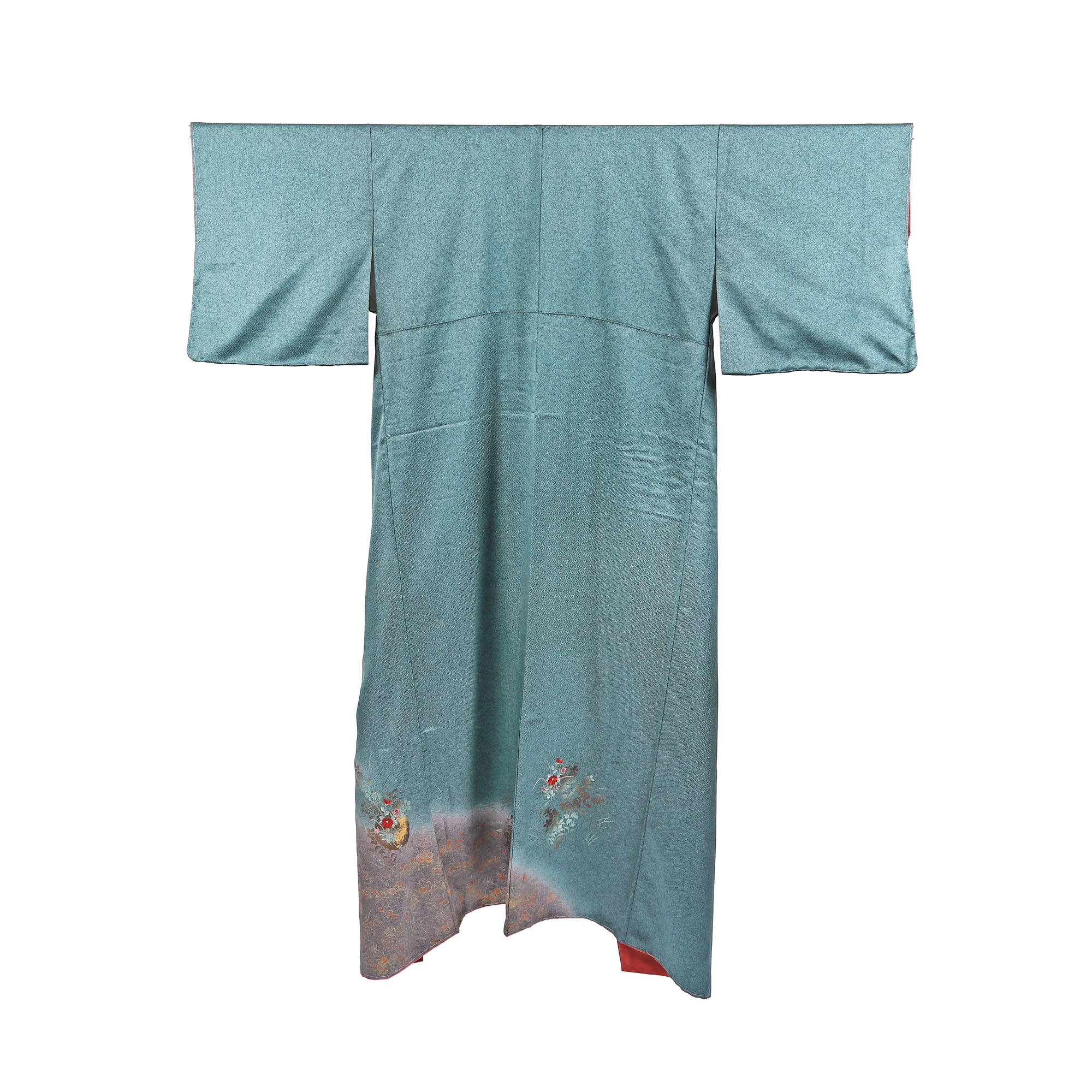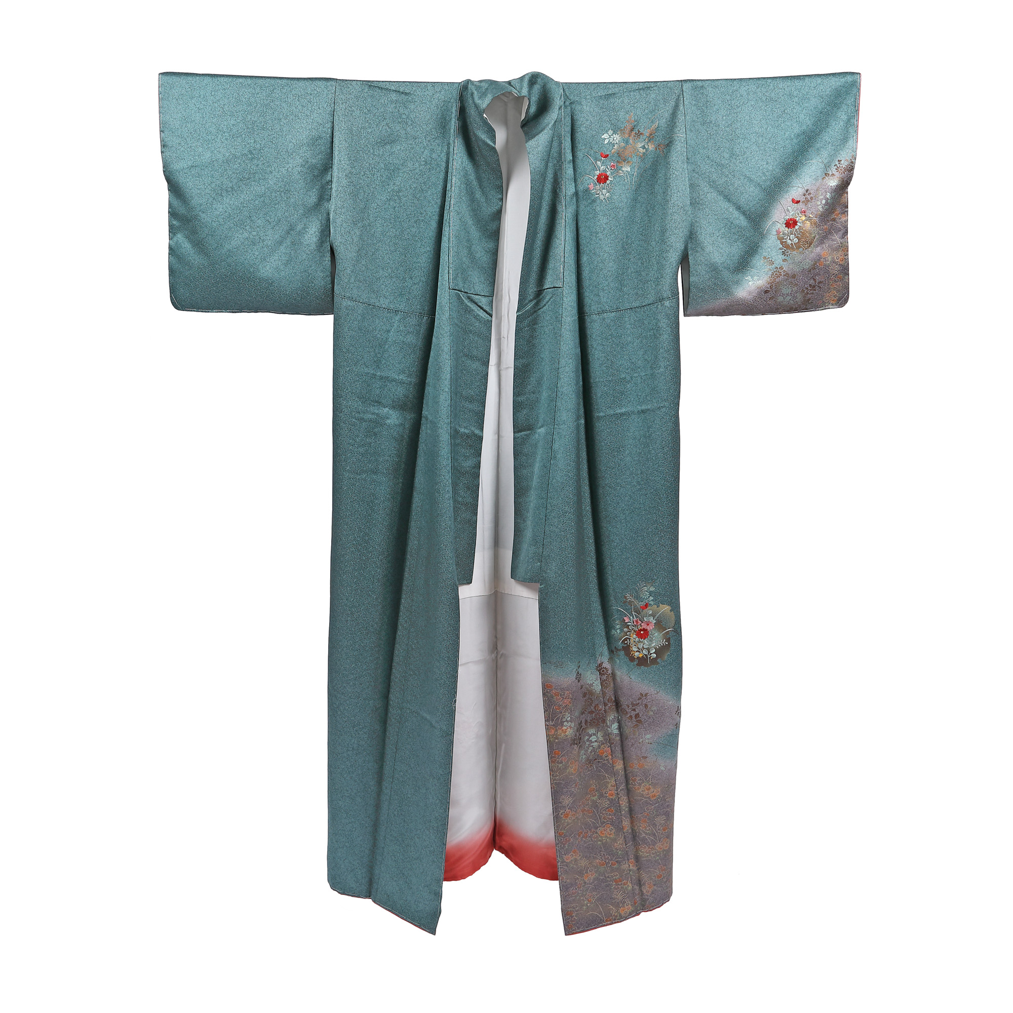 Kimono purtat la ocazii speciale cu același decor pe umeri, mâneci și deasupra tivului. Este din mătase naturală ce prezintă un subtil decor geometric în țesătură. Ornamentica este realizată prin broderii manuale fitomorfe, realizate cu fir de mătase, și pictură cu pigmenți speciali și pulbere de aur. Este cusut și asamblat manual. Interiorul este din mătase într-un degrade realizat manual.
