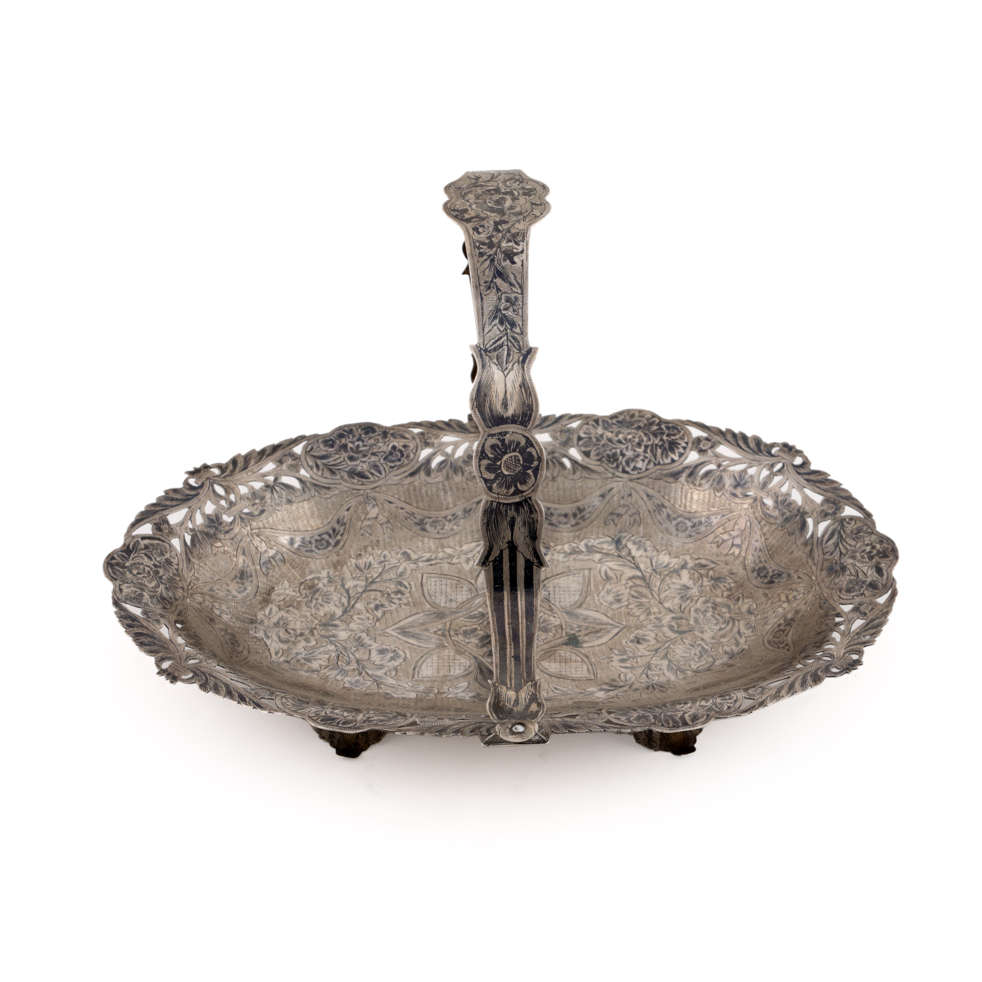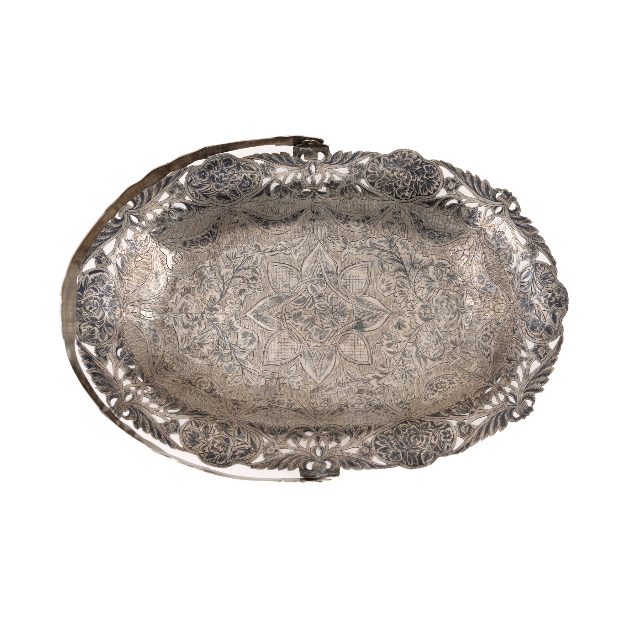 31. Coș cu ansă, din argint, decorat în tehnică niello cu grădină cu flori, începutul sec. XX