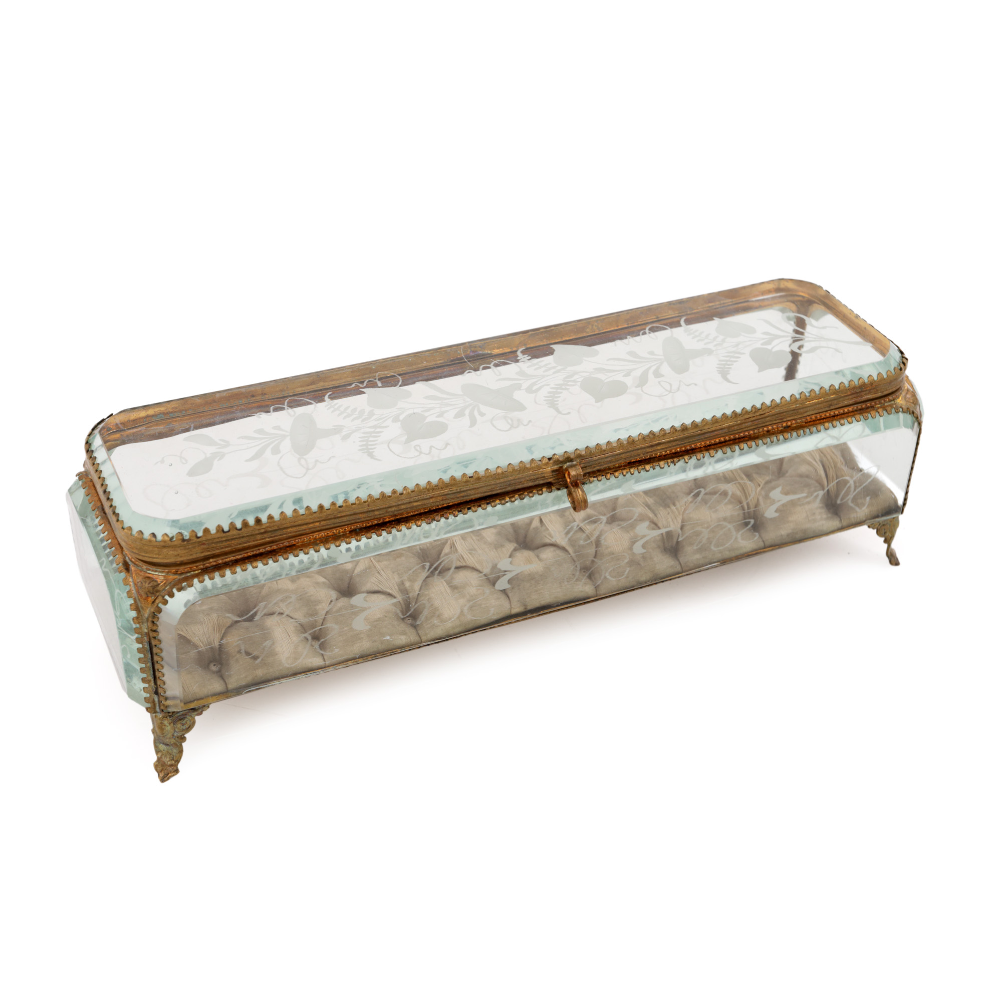 10. Cutie de bijuterii din cristal gravat, decorată cu motive vegetale și rochița-rândunicii, prima jumătate a sec. XX