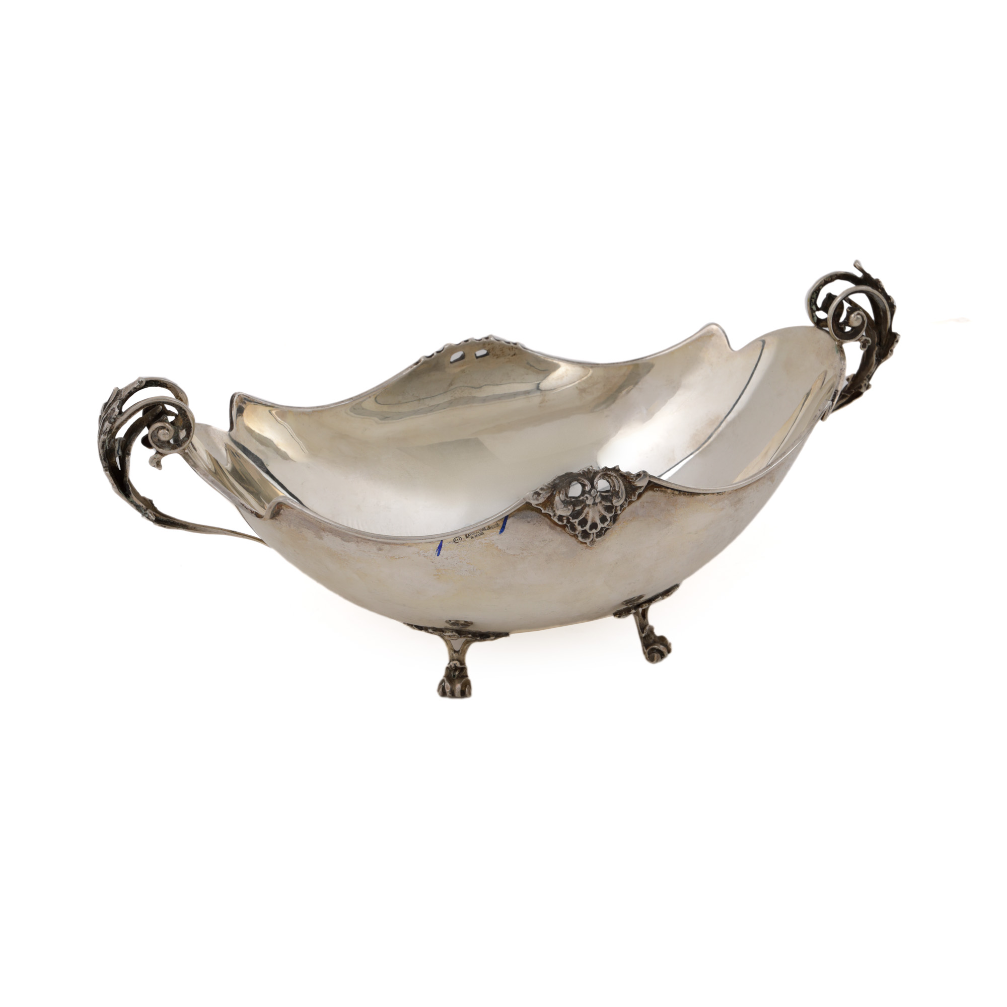 44. Elegantă fructieră din argint, decorată cu motive Rocaille, prima jumătate a sec. XX
