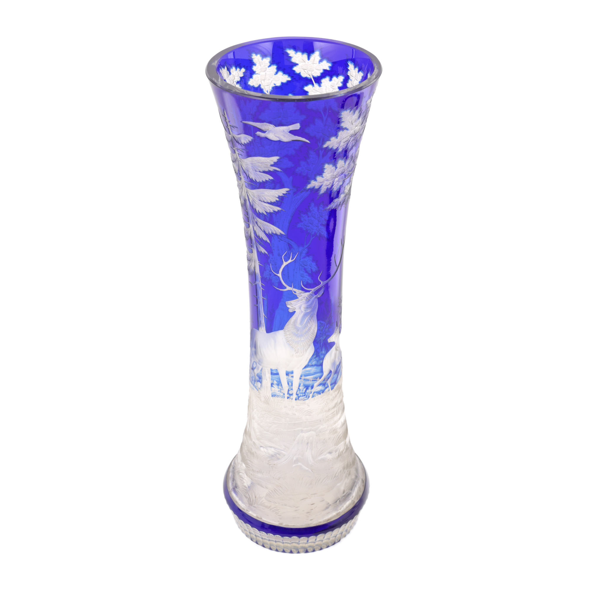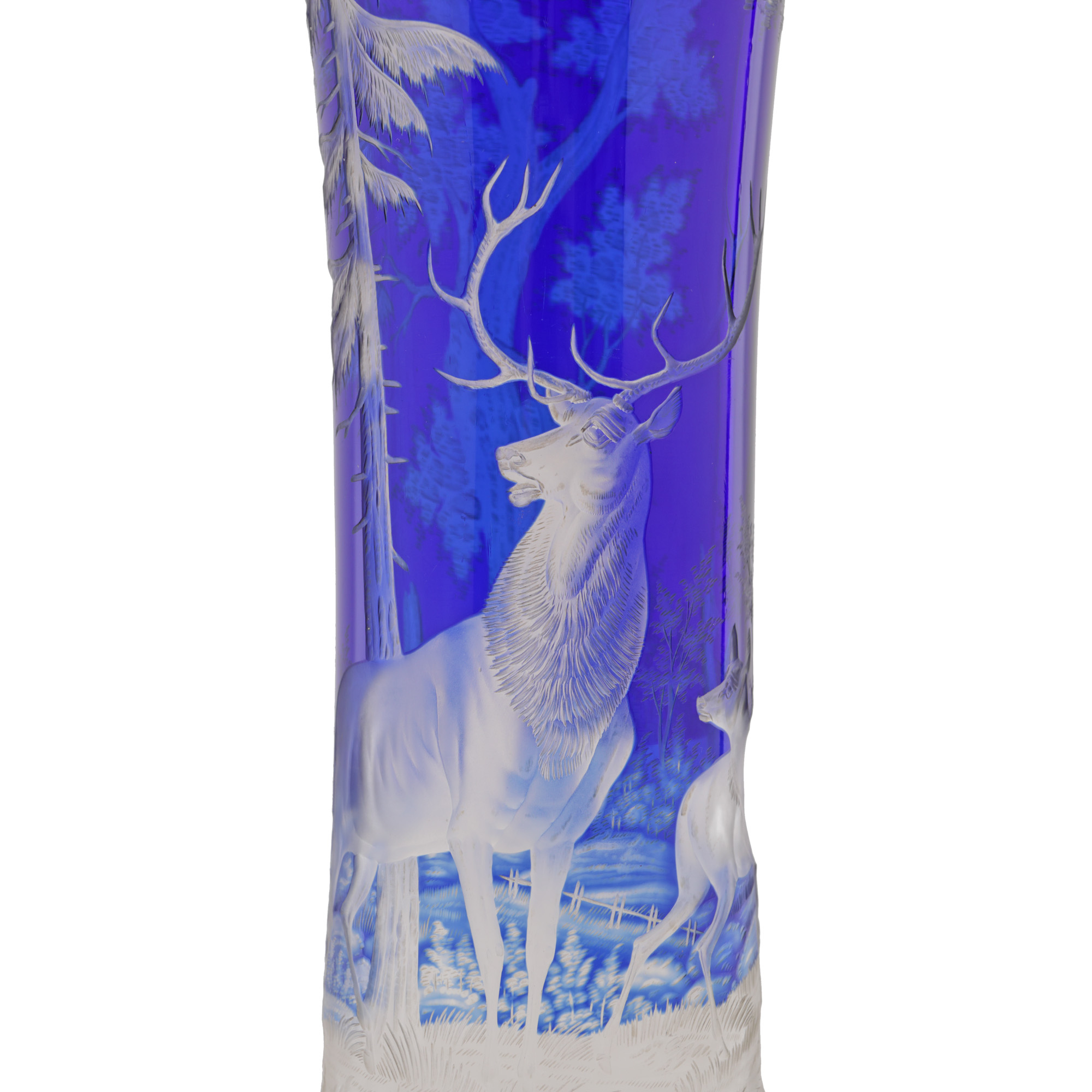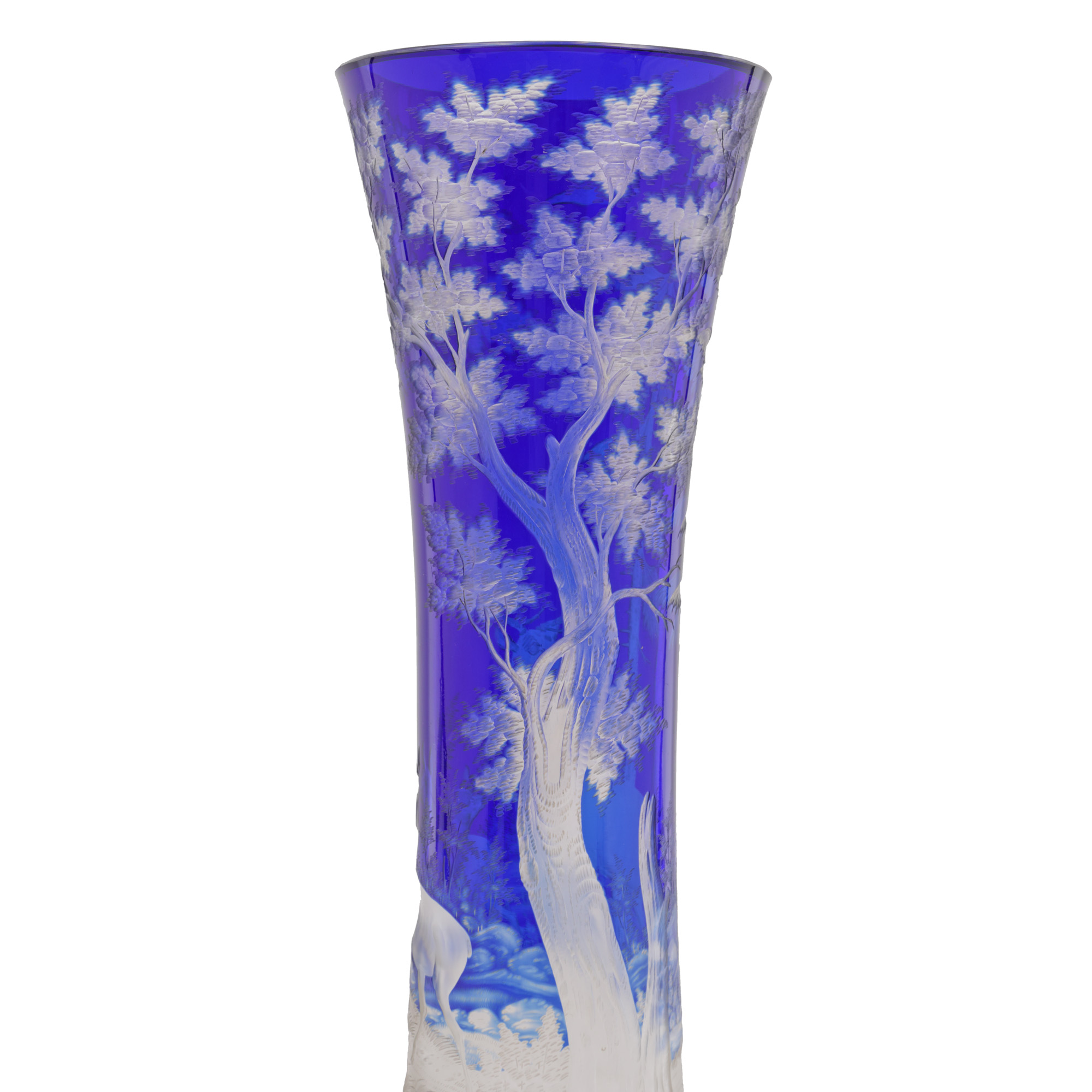 54. Impresionantă vază din cristal de Bohemia, decorată cu scenă de vânătoare