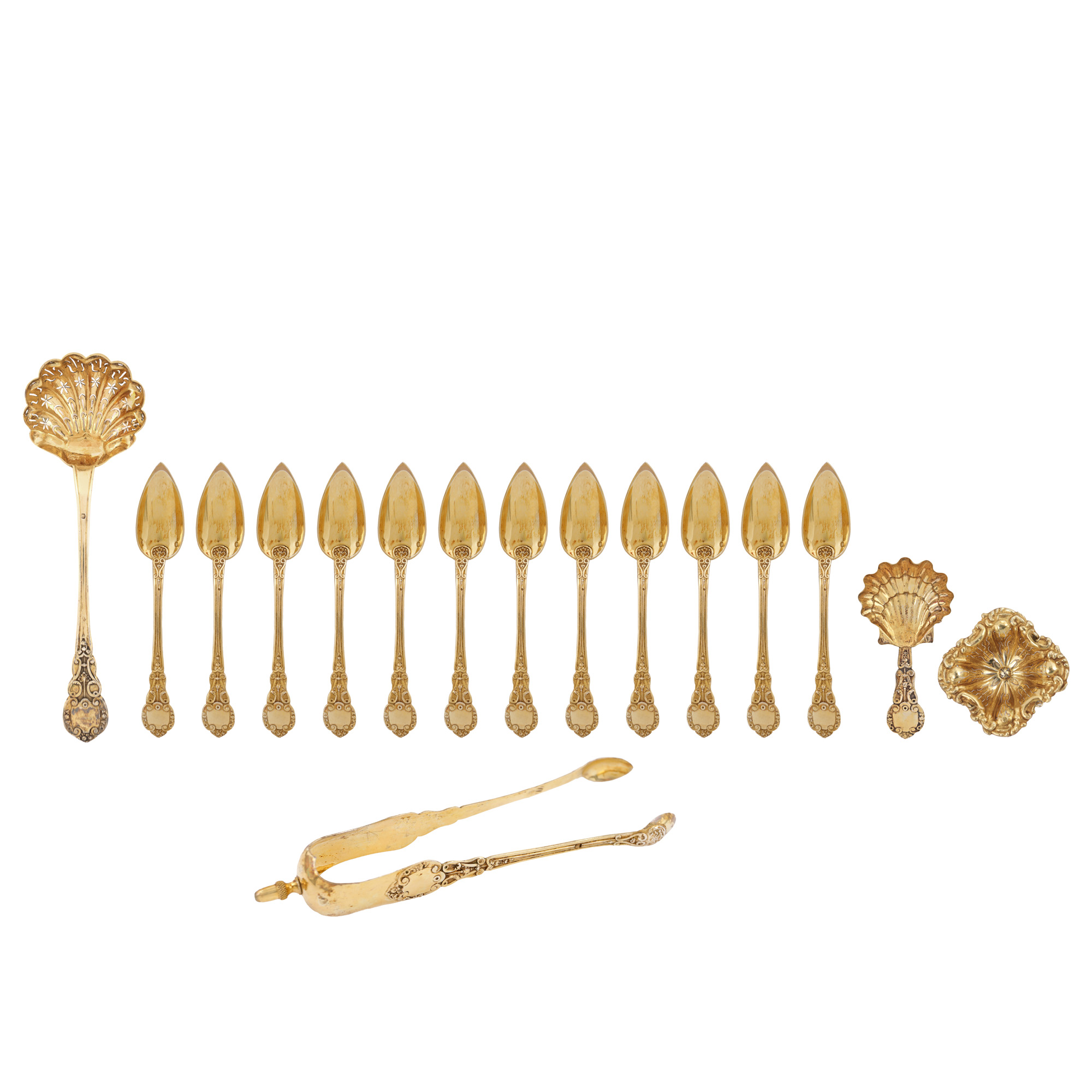 13. Serviciu de tacâmuri din argint aurit pentru servirea desertului și ceaiului, în stil Rococo, în cutia originală
