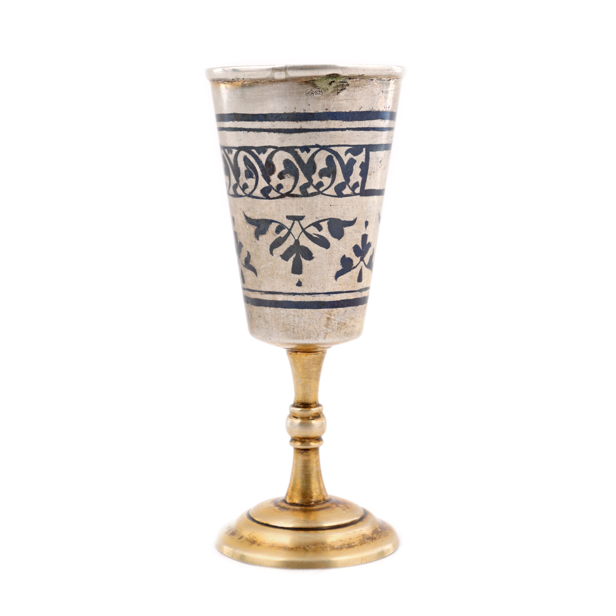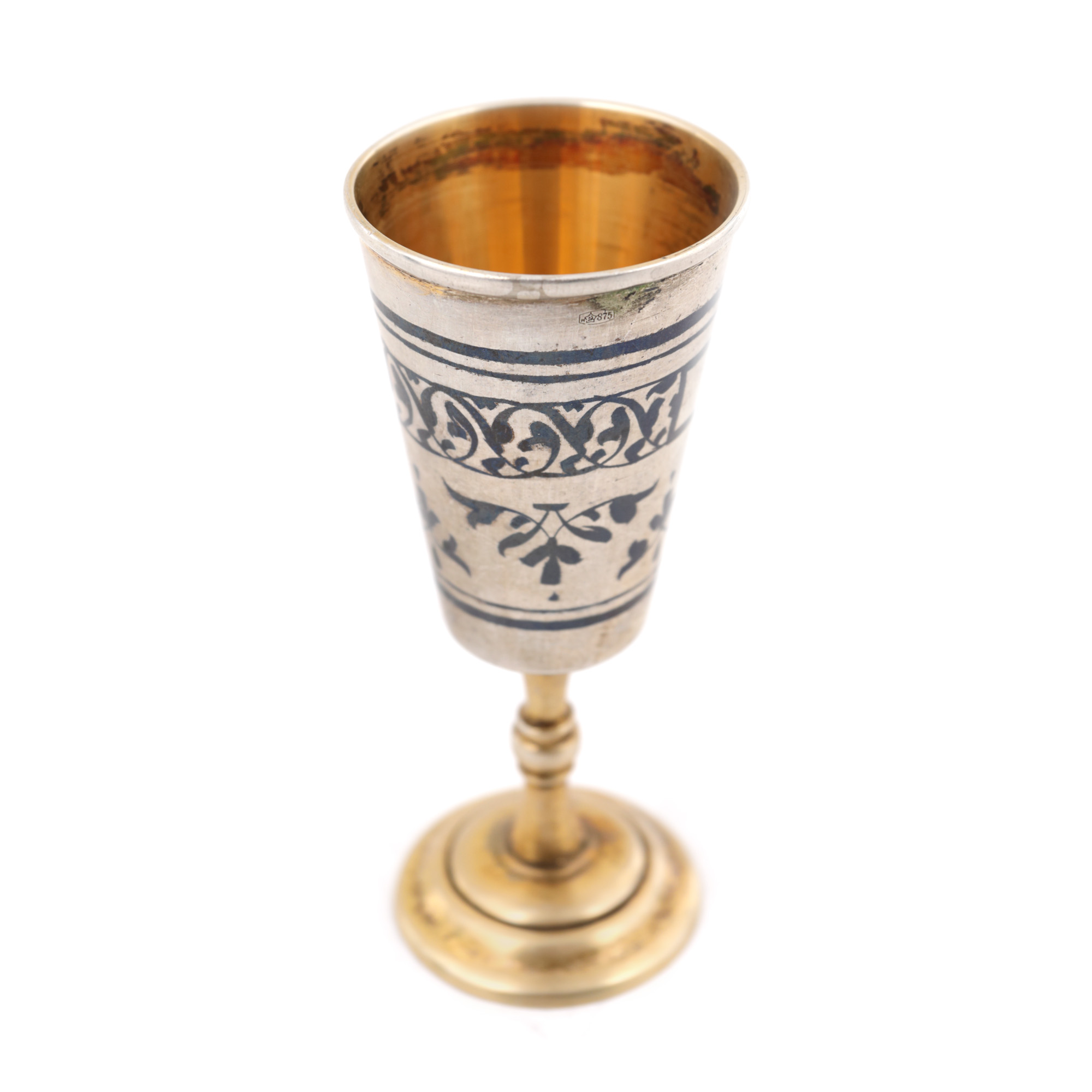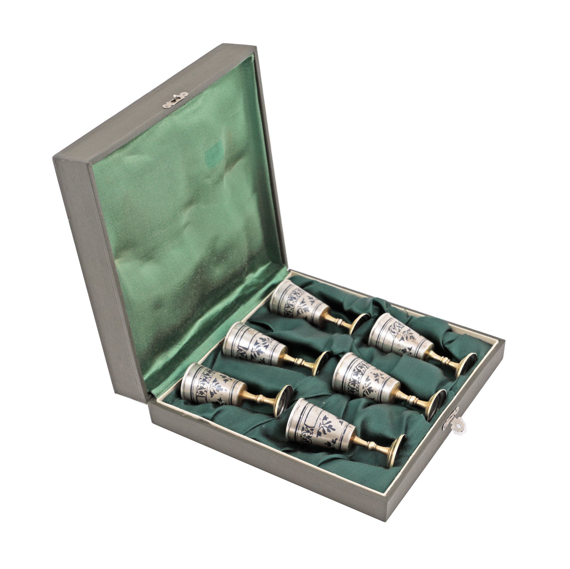 39. Set format din 6 pahare, din argint niello, decorate cu motive vegetale, în cutia originală [cca. 1968]