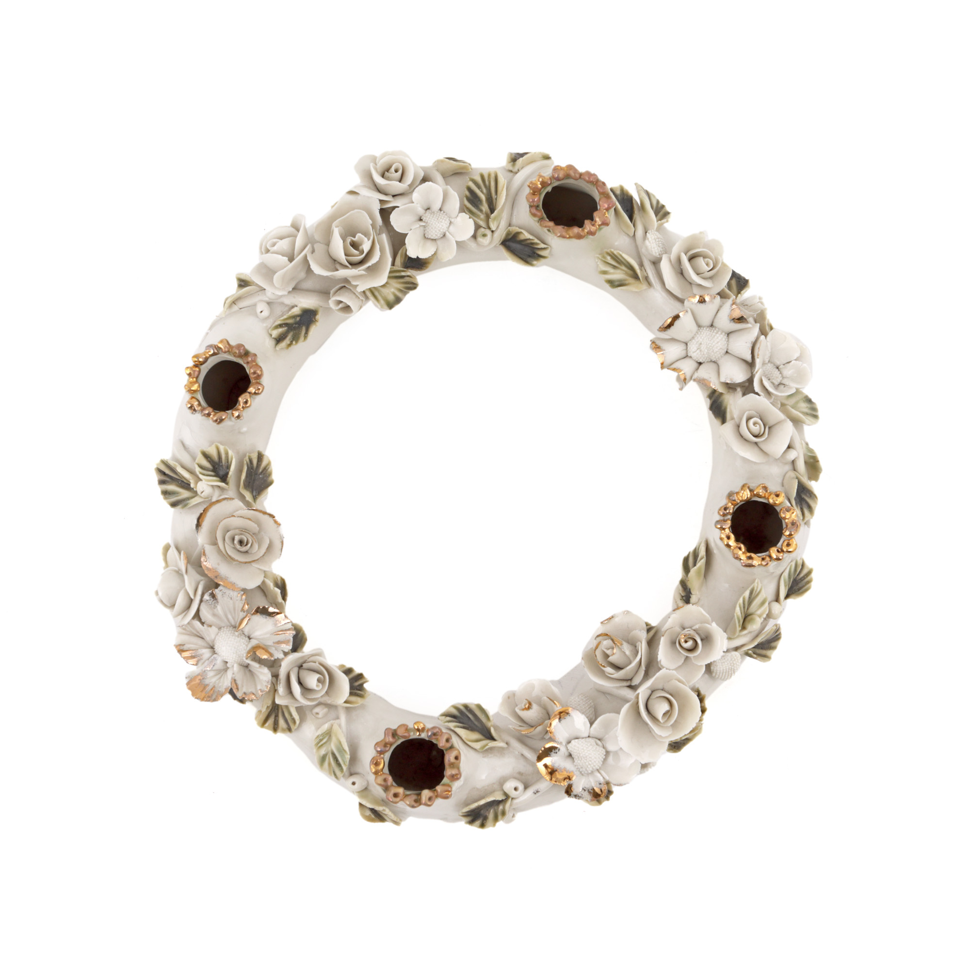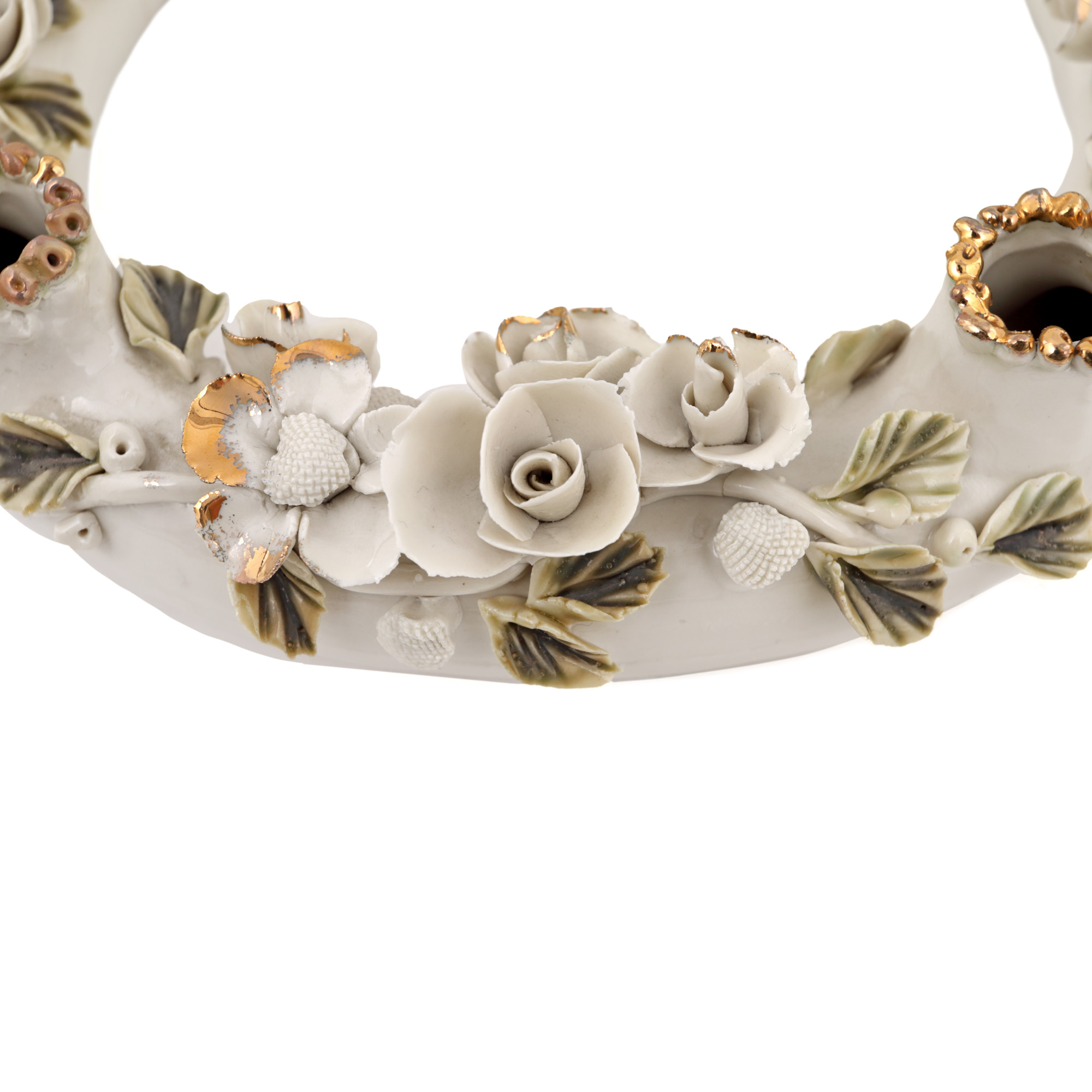 41. Sfeșnic circular din porțelan, de masă, decorat cu trandafiri, prima jumătate a sec. XX