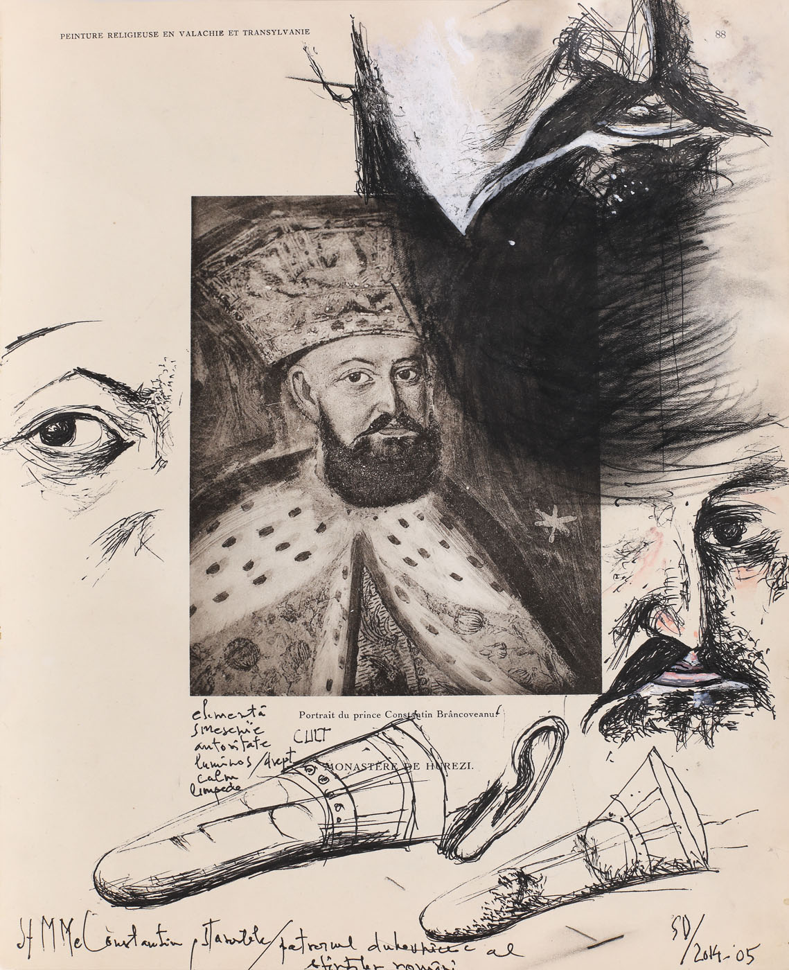 cărbune, tuș și tempera pe filă cu portretul lui Constantin Brâncoveanu din cartea "Peinture religieuse en Valachie et Transylvanie"