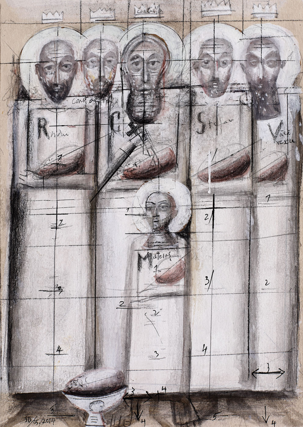 107. Studiu pentru monolitul deschis înspre jertfă al icoanei Sfinților Martiri Brâncoveni (Grupul creștin dinaintea jertfei) [2014]