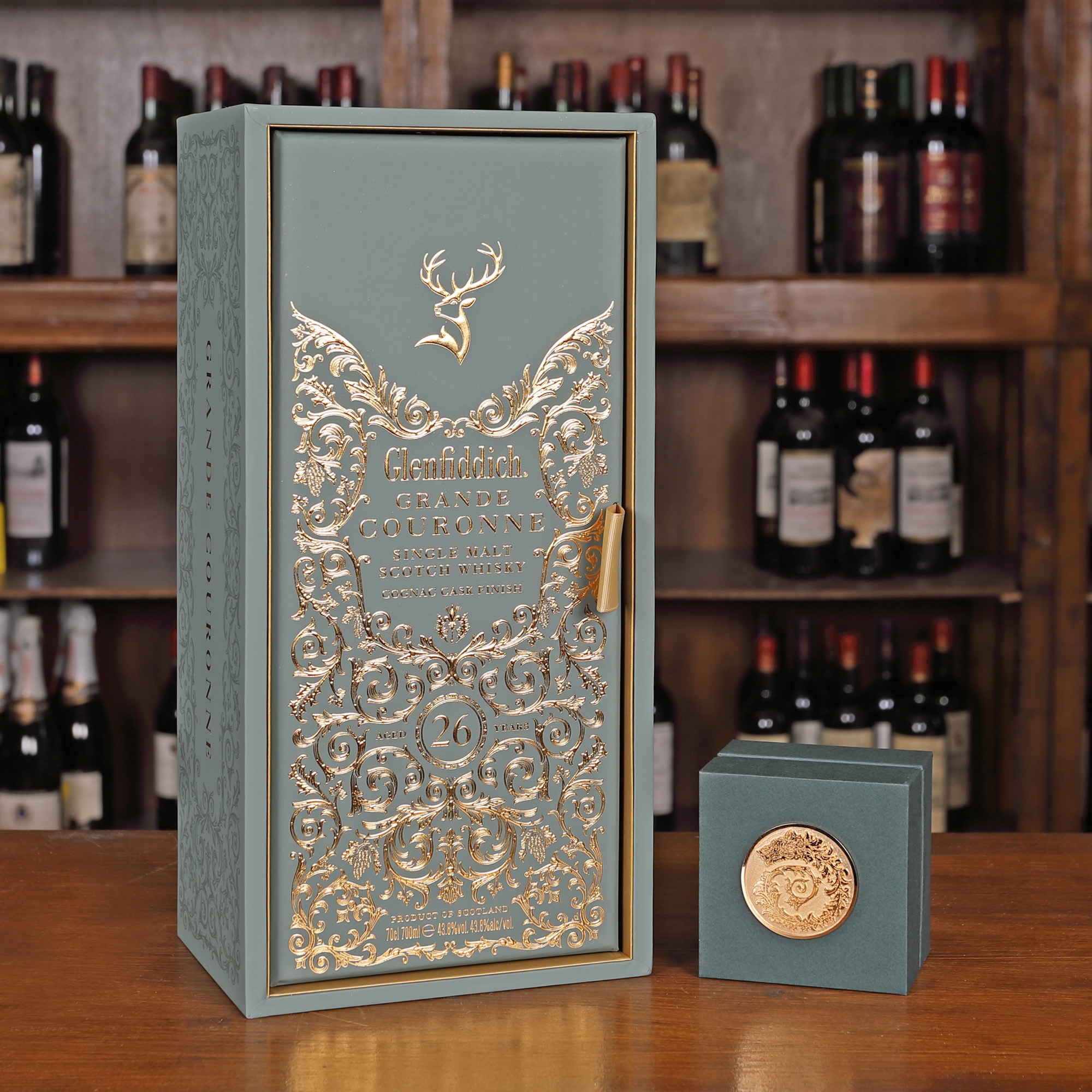 Cel mai premiat single Malt Scoth Whisky din lume lansează în România, in ediție limitată, noul Glenfiddich Grande Couronne – o expresie rafinată și exclusivistă pentru încoronarea celor mai importante ocazii. În vârstă de 26 de ani, acest Single Malt își are finishul timp de cel puțin 2 ani în butoaie rare de coniac franțuzesc care adaugă straturi extra generoase de stejar dulce prăjit și catifelat, arome cremoase de cafea, zahăr brun și condimente specifice. Glenfiddich Grande Couronne îmbină cele mai fine arome din Scoția și Franța pentru a crea gustul care redefinește luxul și care intrigă nonconformiștii. România este una dintre țările care a adus o amprentă locală prin colaborarea cu un artist român, inspirat de detaliile iconice de pe noua sticlă și de unul dintre cele mai recunoscute simboluri românesti (lupul dacic), designerul Alexandru Ciucu a creat o pereche de butoni unici, care să poată fi purtati cu mândrie de cel care licitează prima sticlă din România. Sticla si cutia sunt decorate sunt decorate cu un filigran auriu iconic, care inspira opulenta si unicitate, unde designerul Alexandru Ciucu a ales un element local exprimat printr-un obiect unicat, de exceptie. Fondurile colectate în urma vanzarii lotului caritabil vor fi direcționate către sprijinirea activității creatoare a tinerilor artiști români.