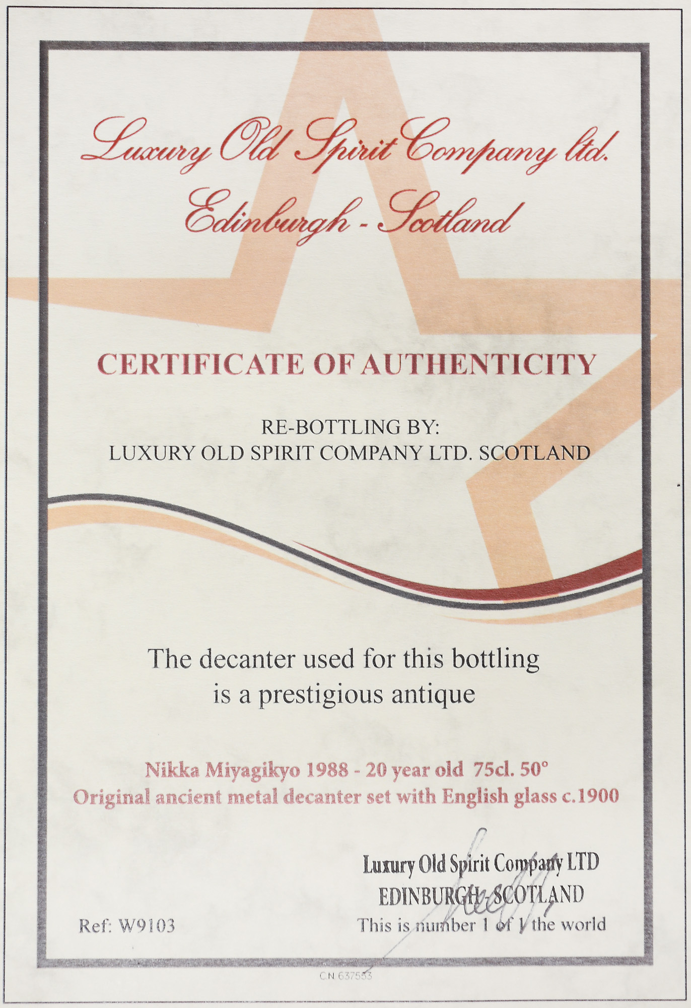 12. Nikka Miyagikyo 1988, învechit 20 de ani, 1st x 0,75l, în decantor din cristal, cu certificat de autenticitate