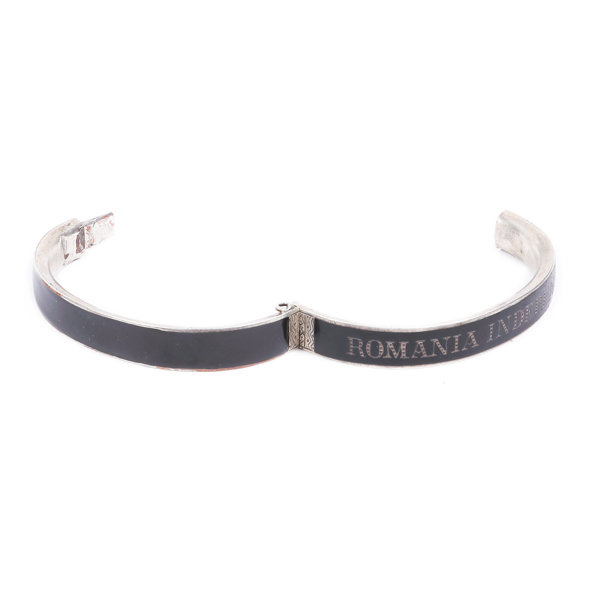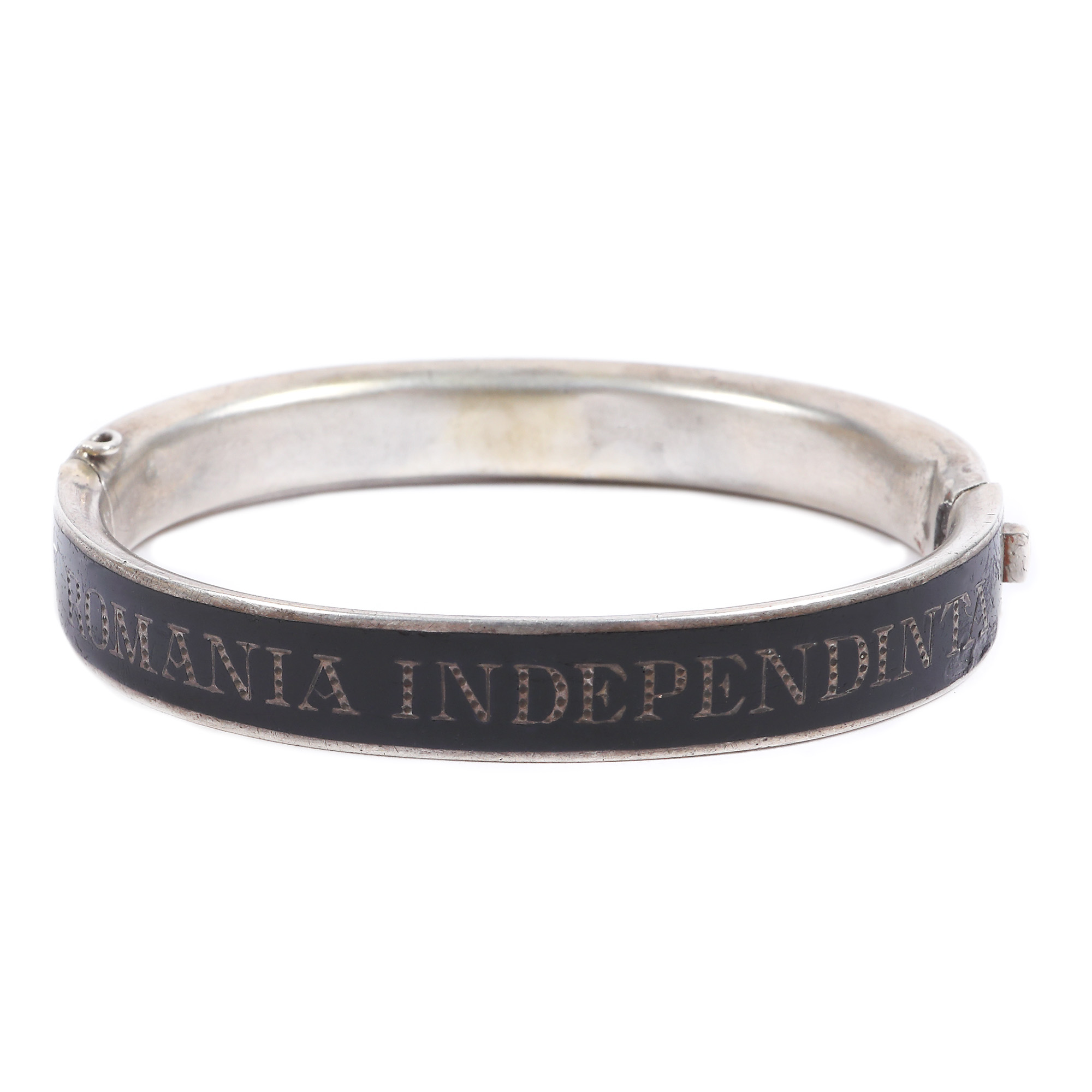 38. Brățară din argint Markowitsch & Scheid, decorată cu email, inscripționată ”România Independintă”, cca. 1878-1890, comandă probabil a unui veteran al Războiului de Independență