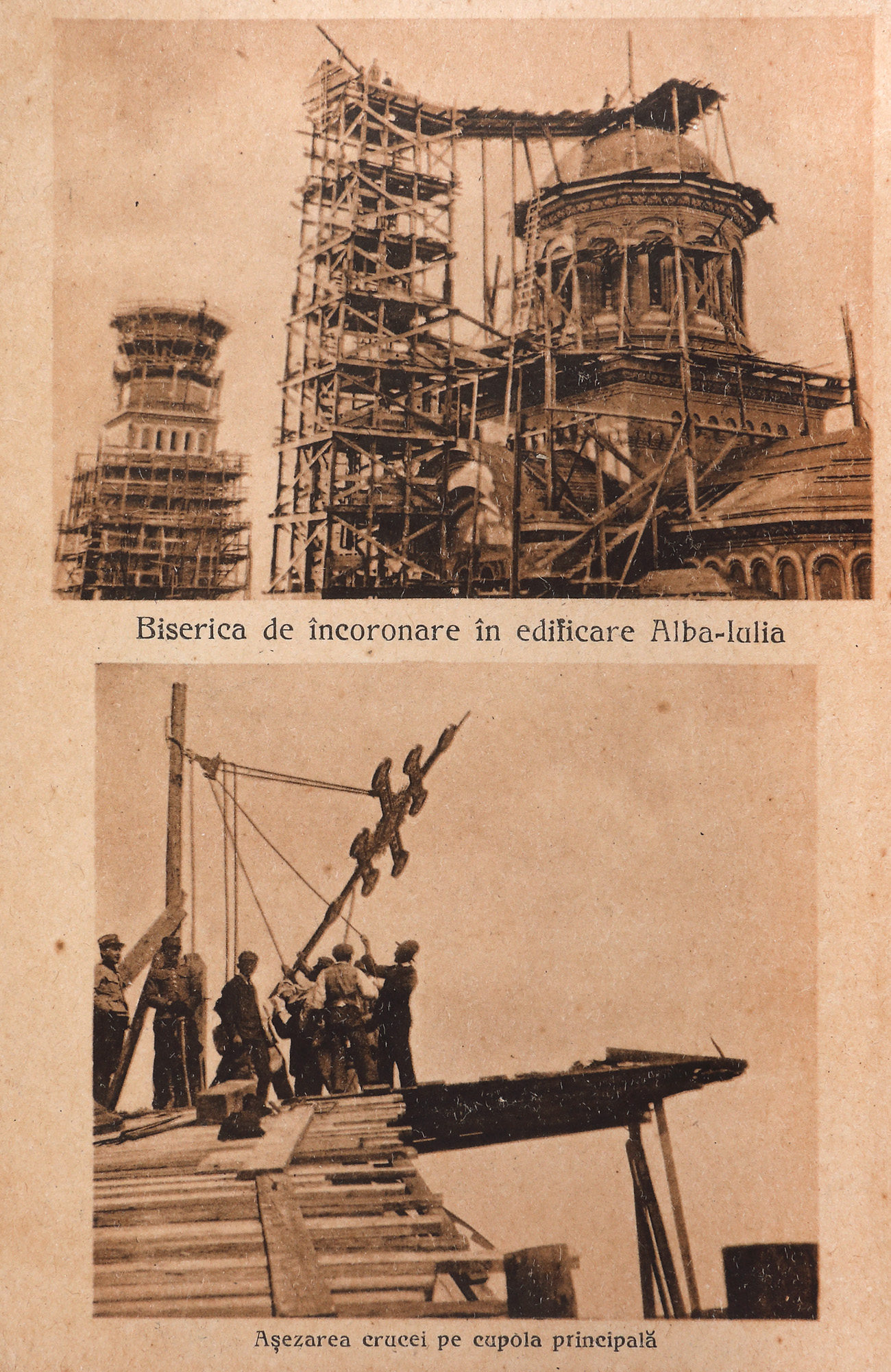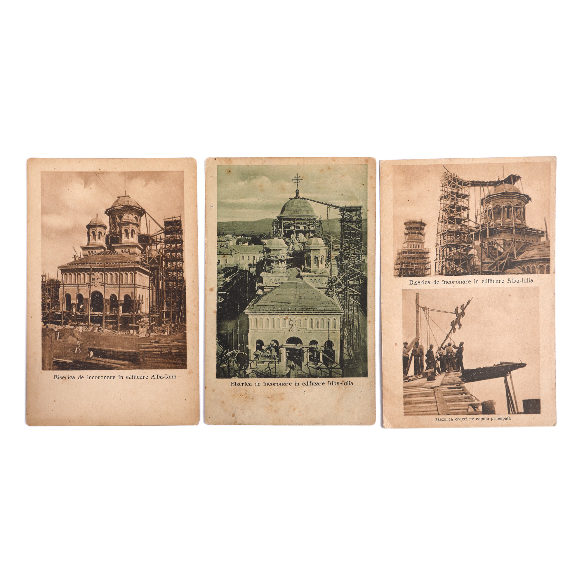 57. Lot format din trei cărți poștale ilustrând momente din construcția Catedralei Încoronării de la Alba Iulia, cca. 1922