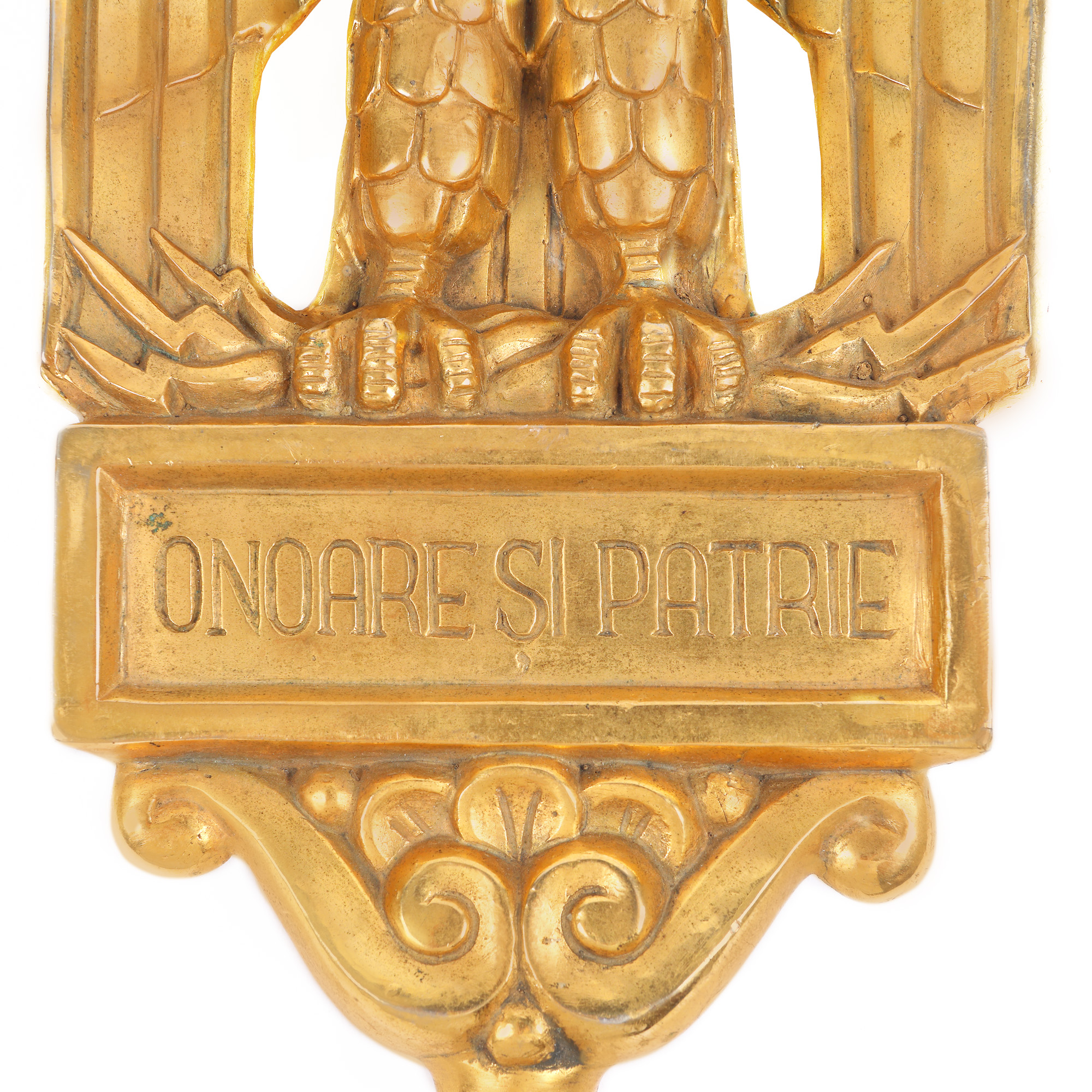 36. Ogivă de drapel, Acvila cruciată a Școlii de subofițeri de jandarmi ”Grigore Alexandru Ghica”, Bumbești-Jiu, prima jumătate a sec. XX
